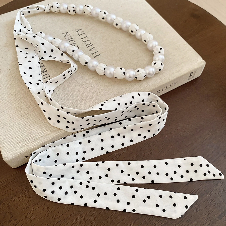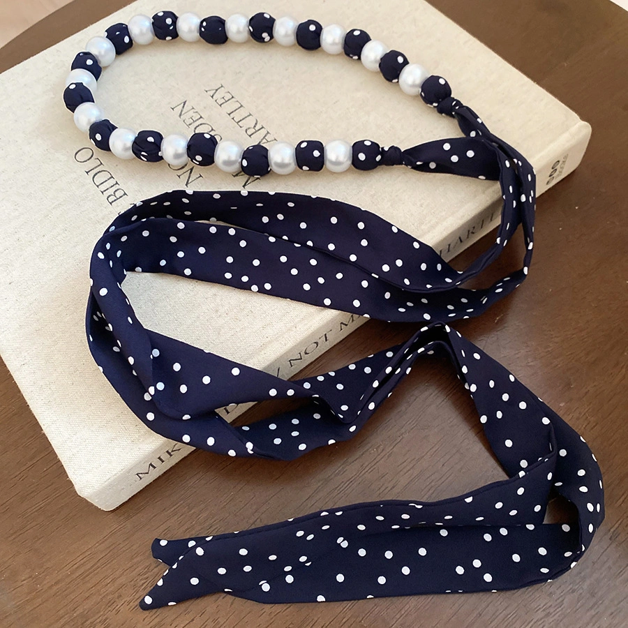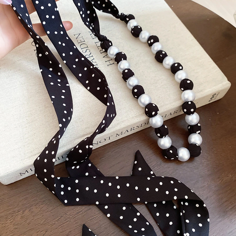 Pearl Crystal Polka Dot Long Silk Scarf Necklace Waist Chain, a Versatile New Korean-Style Belt with a Unique Design