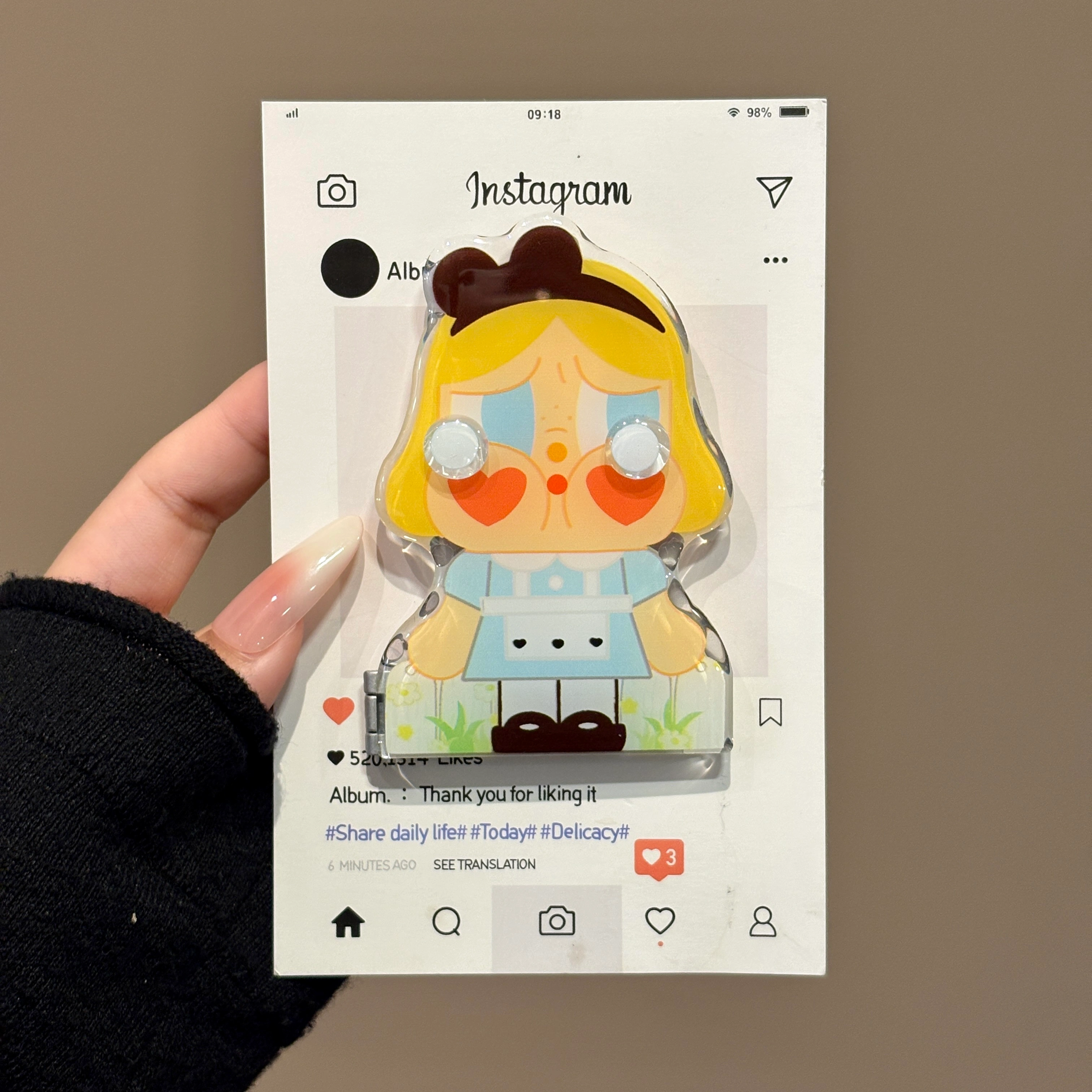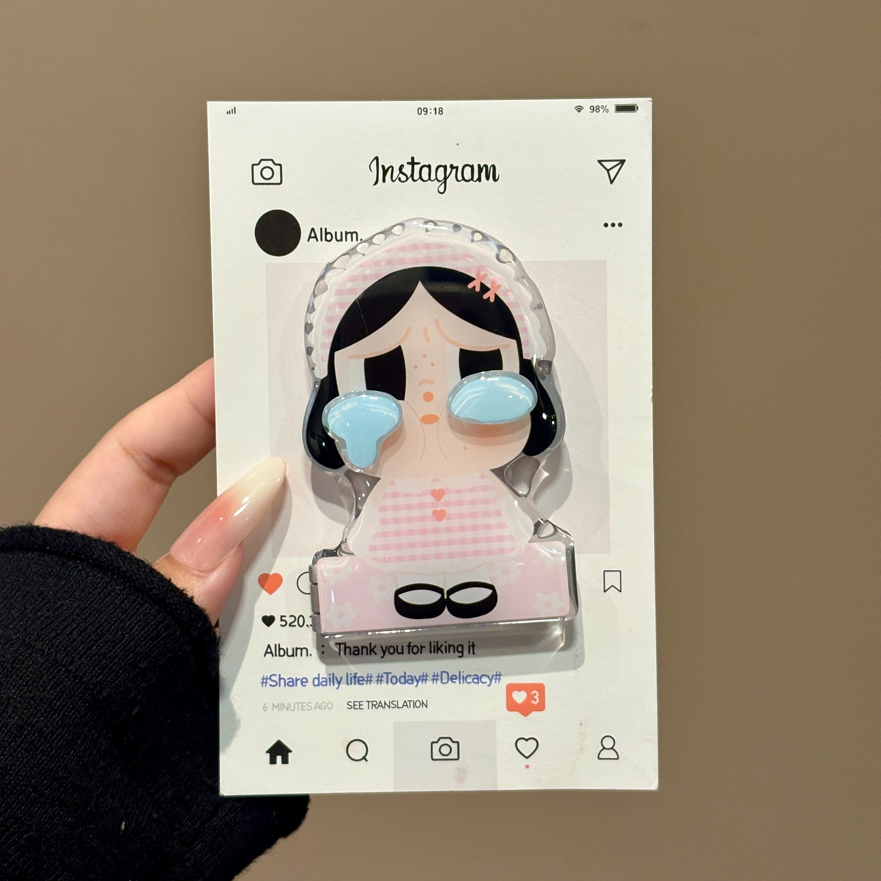 Crying Baby Mirror, Three-Dimensional Mirror Stand, Phone Case with Adhesive Backing, Transparent Adhesive, Niche Female Folding Support for Watching Dramas