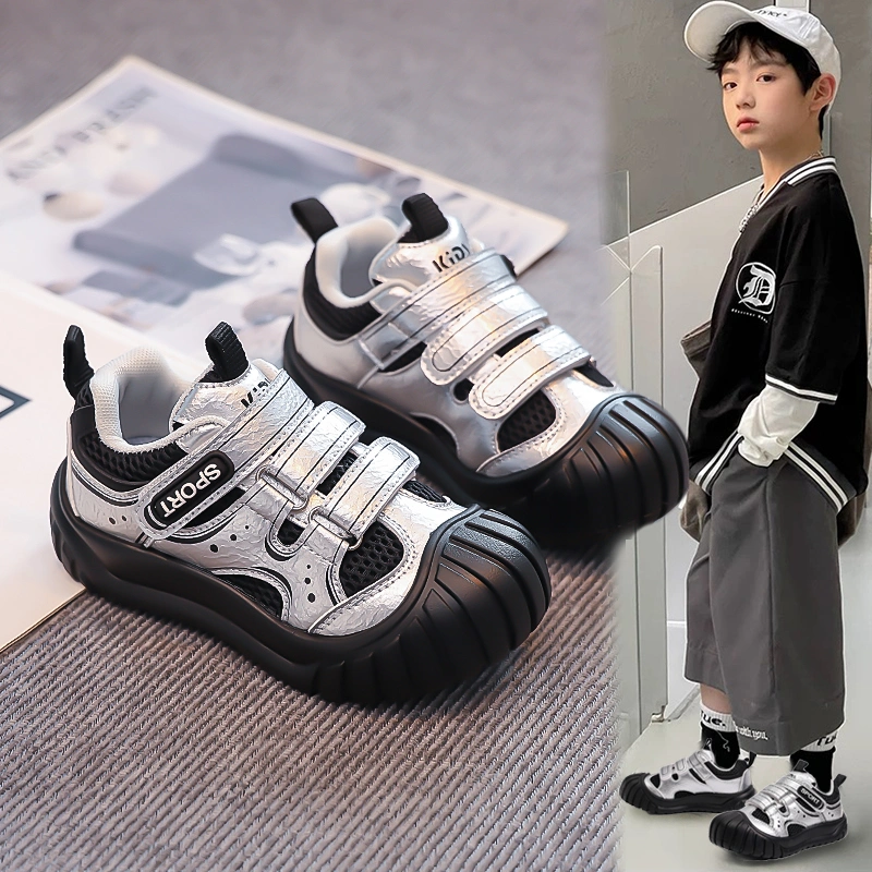 Autumn Anti-Kick Children's Casual Sports Shoes for Boys, Lightweight and Stain-Resistant, Girls' and Boys' Shoes, Silver, Suitable for Wide Feet