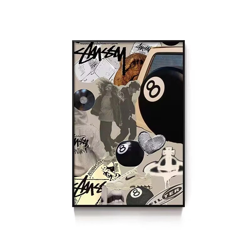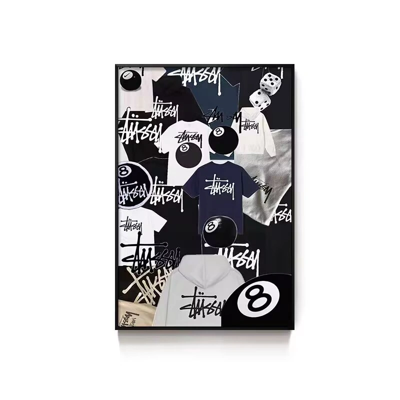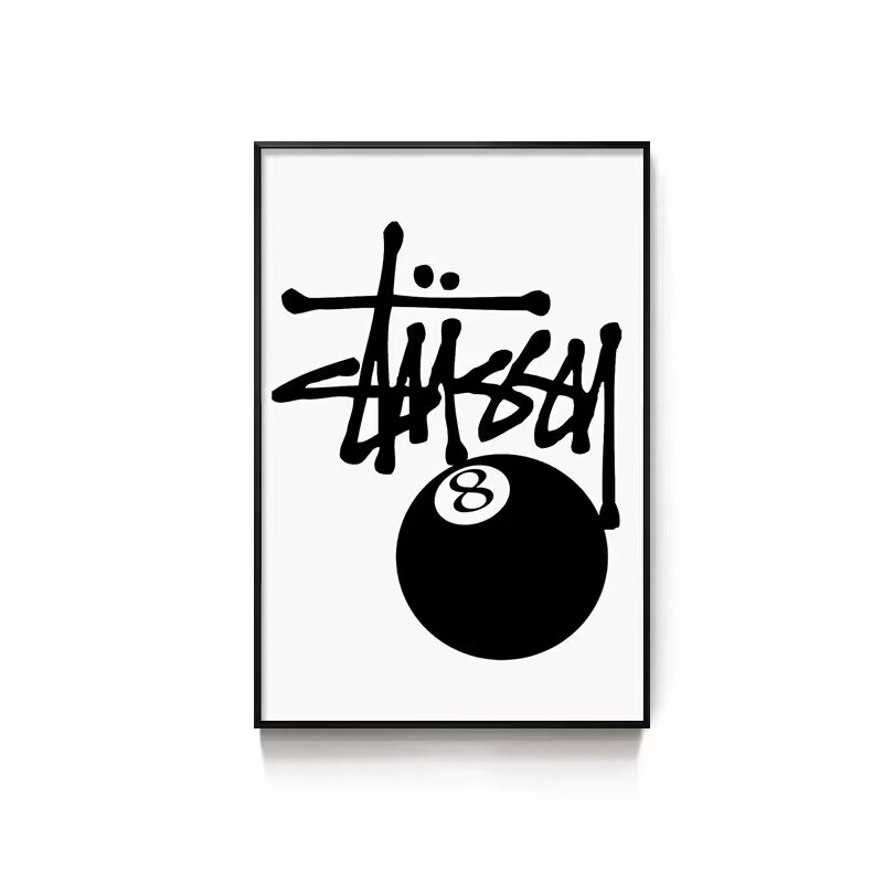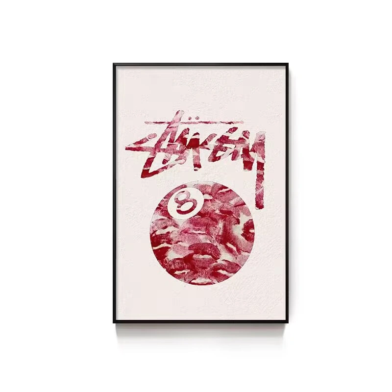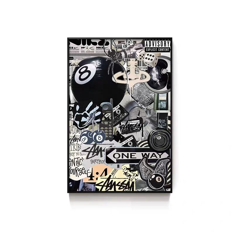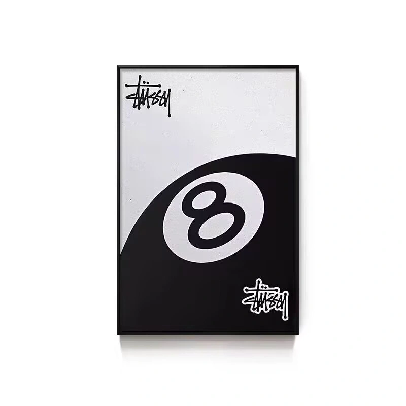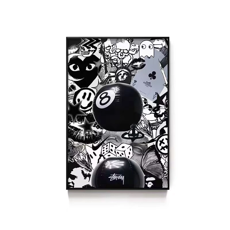 Black Eight-Ball Billiards Hall Wall Art, Billiard Room Club Wall Decoration Painting, Creative Graffiti Trendy Chess and Card Club Painting