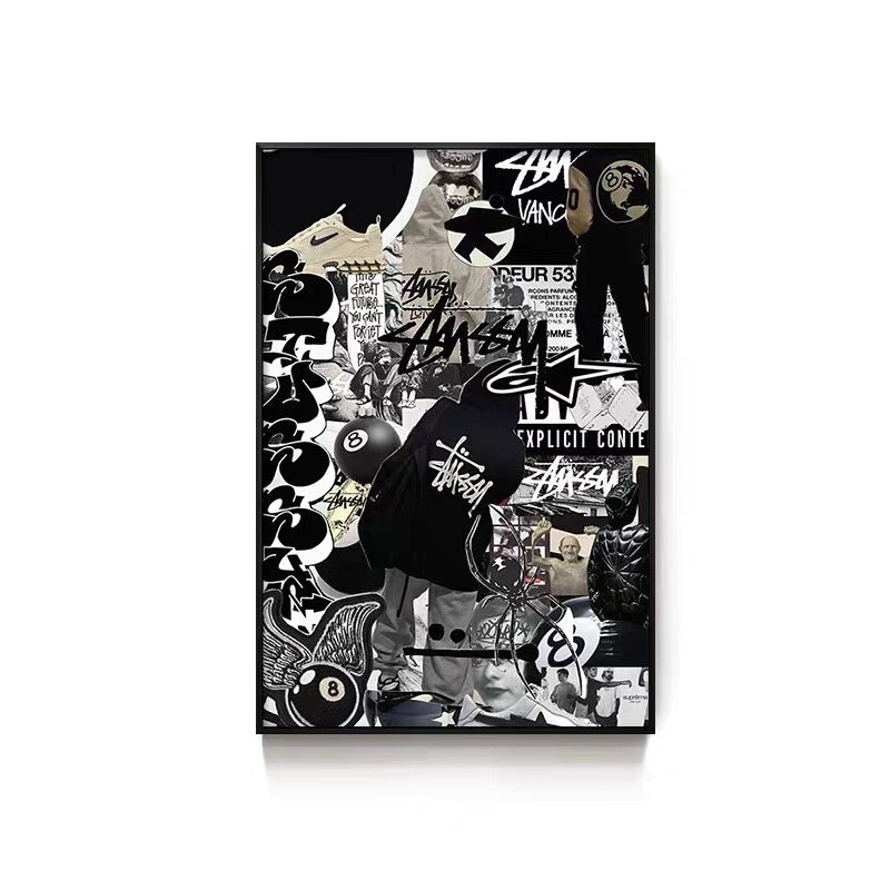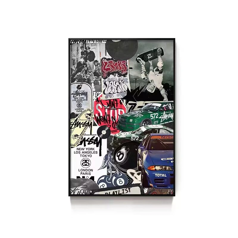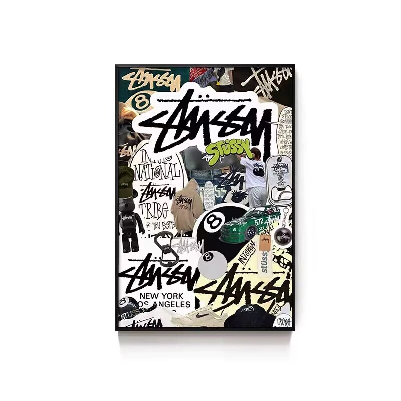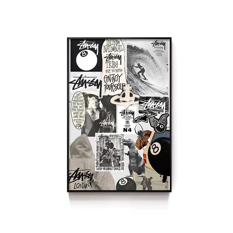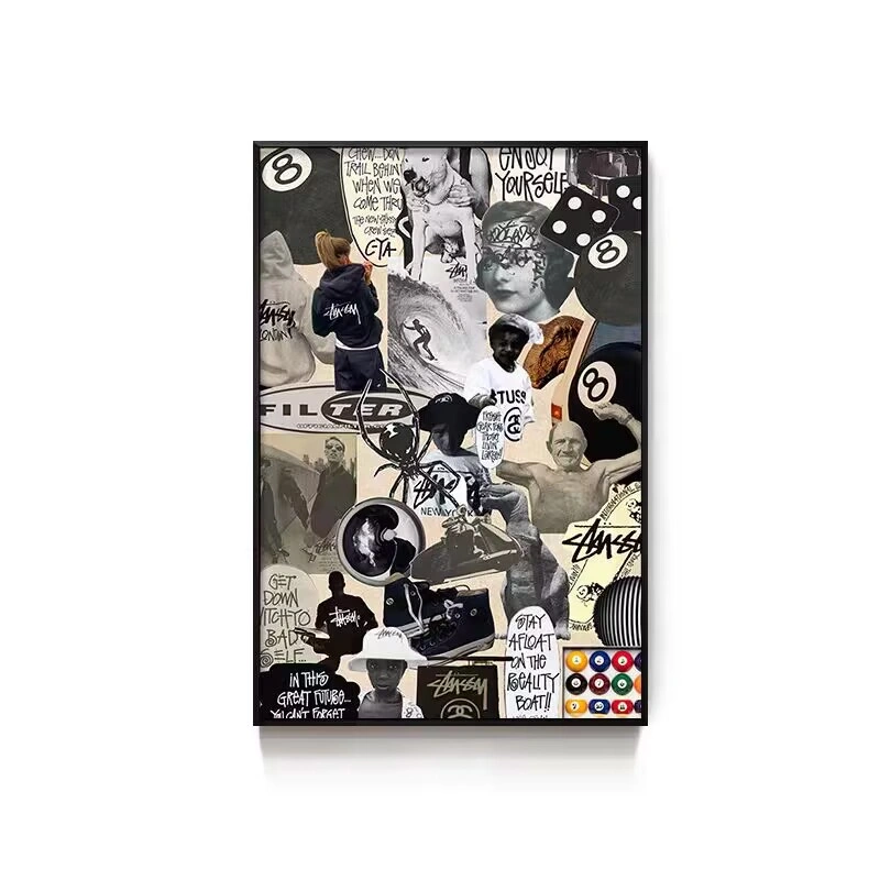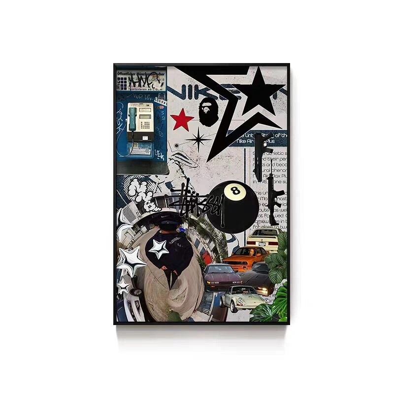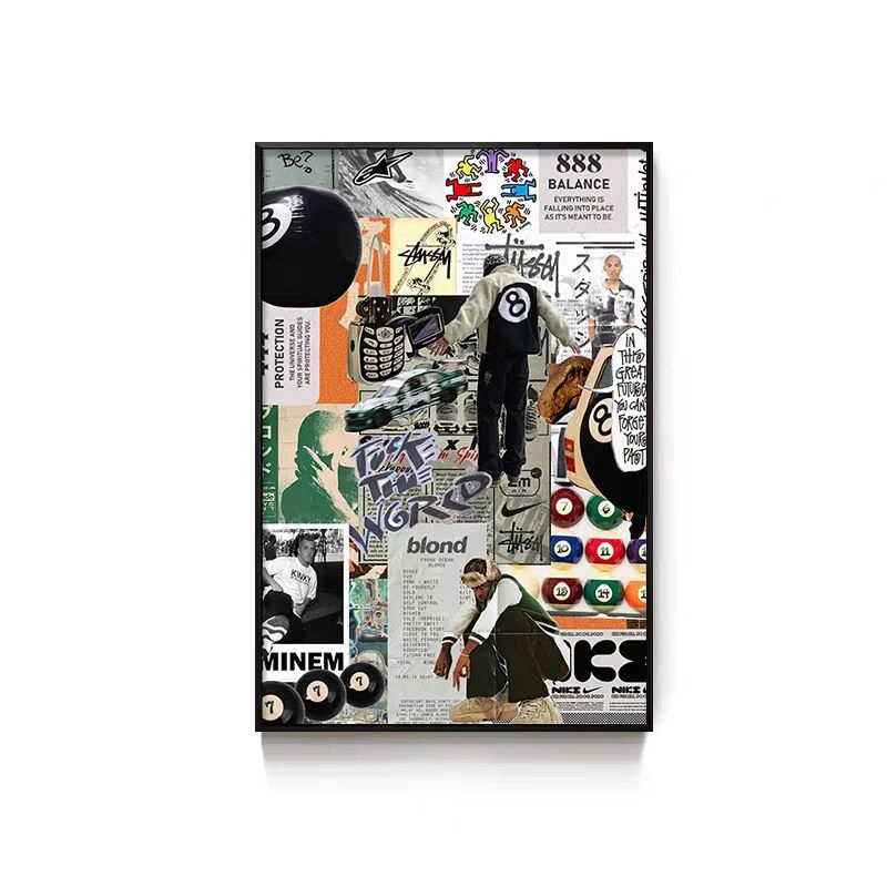 Black Eight-Ball Billiards Hall Wall Art, Billiard Room Club Wall Decoration Painting, Creative Graffiti Trendy Chess and Card Club Painting