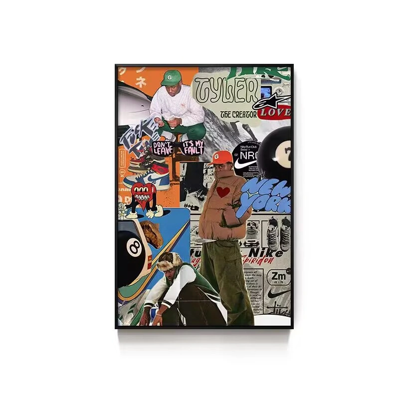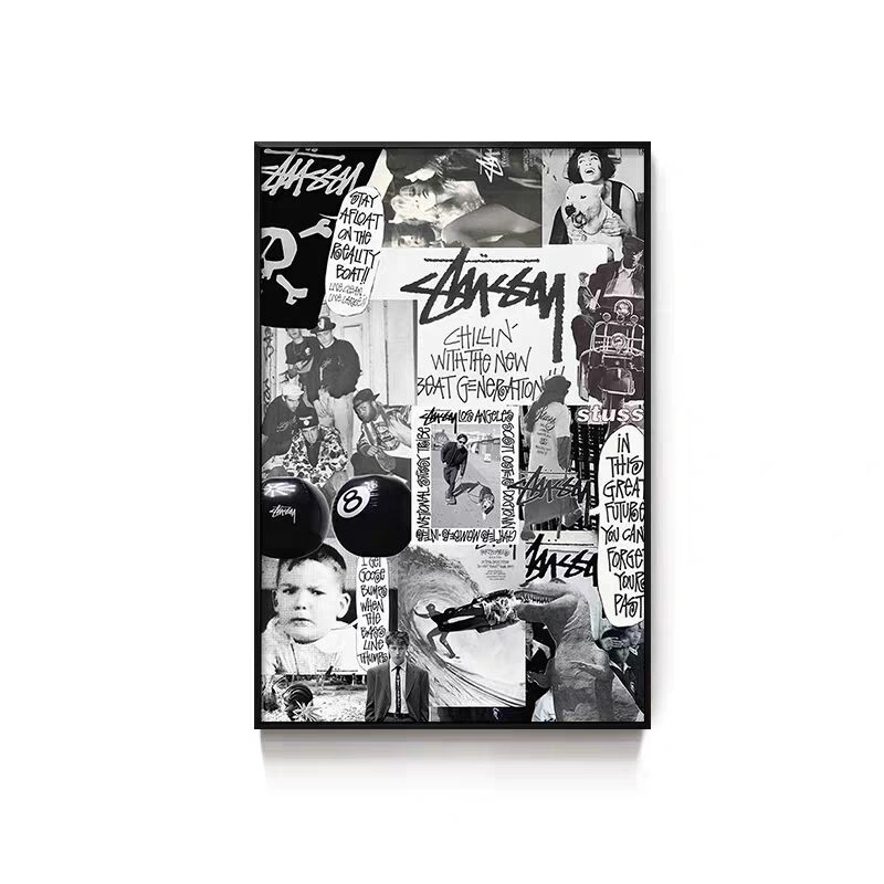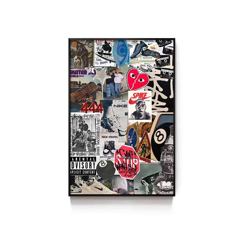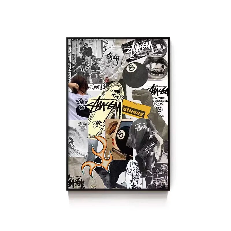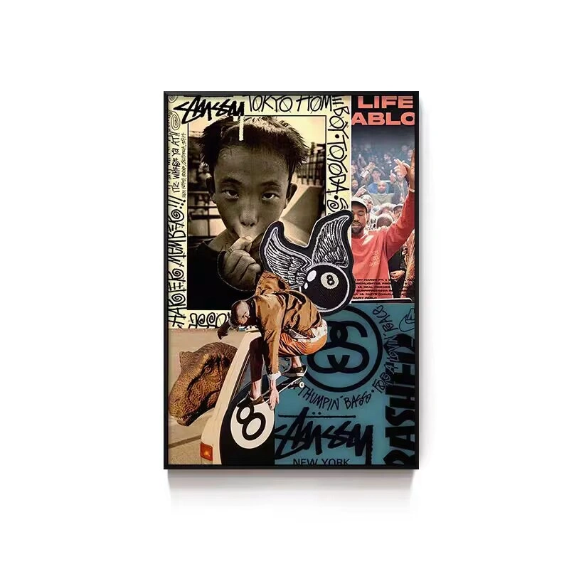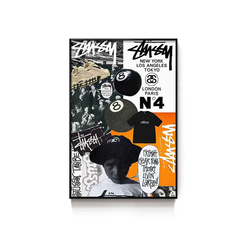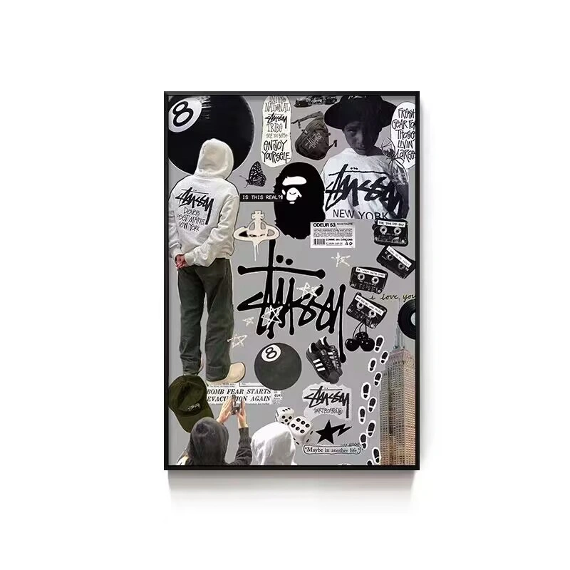 Black Eight-Ball Billiards Hall Wall Art, Billiard Room Club Wall Decoration Painting, Creative Graffiti Trendy Chess and Card Club Painting