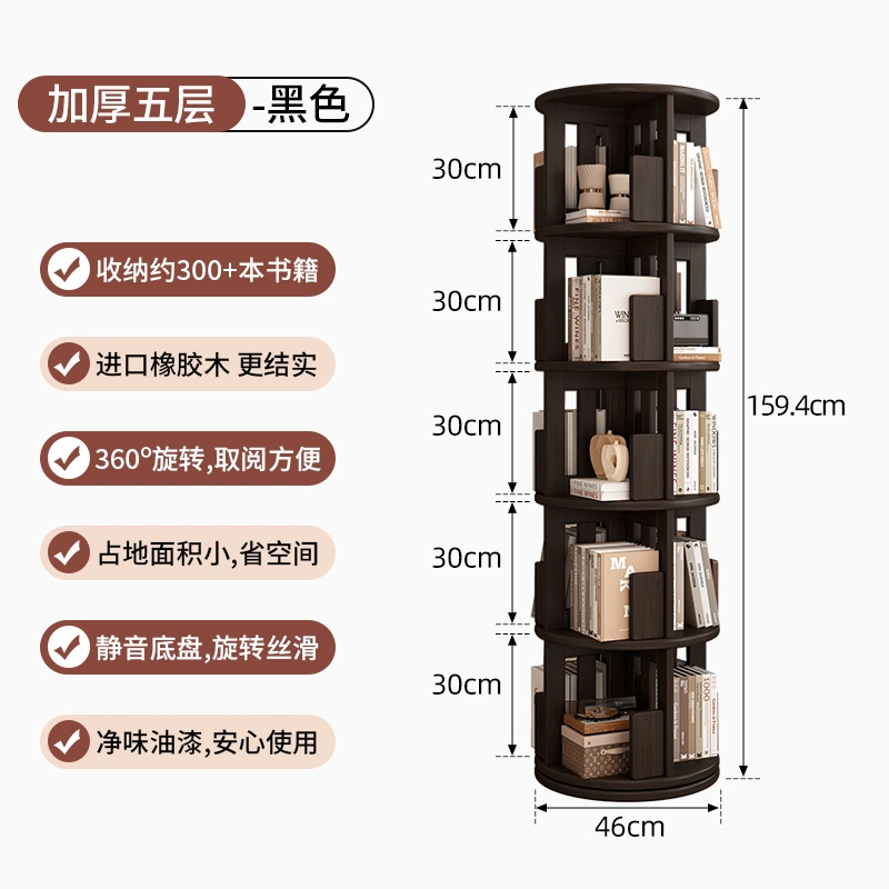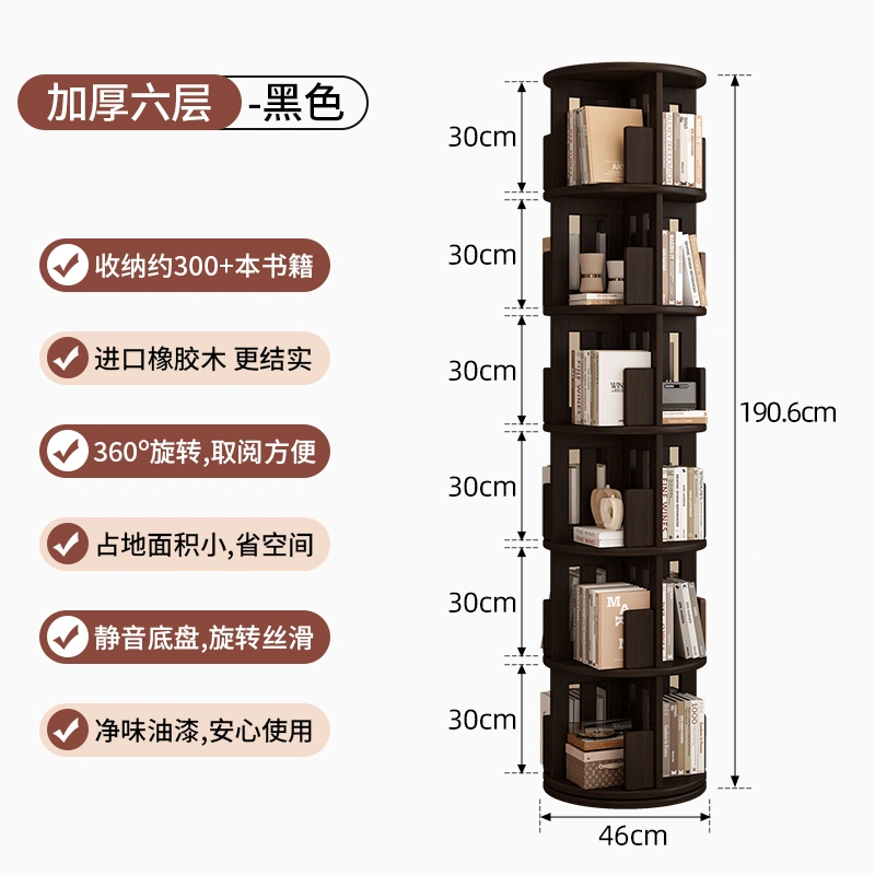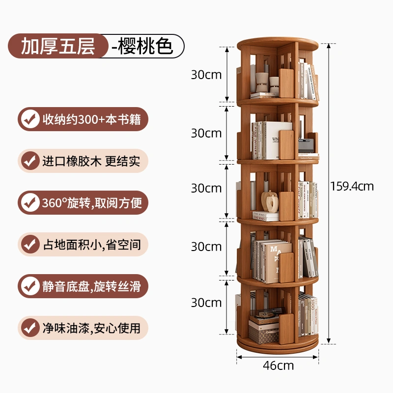 Rotate Bookshelf For Home Bookcase Storage Rack for Junior High School Students Floor-standing kids Picture Book Rack Solid Wood Multi-storey Library