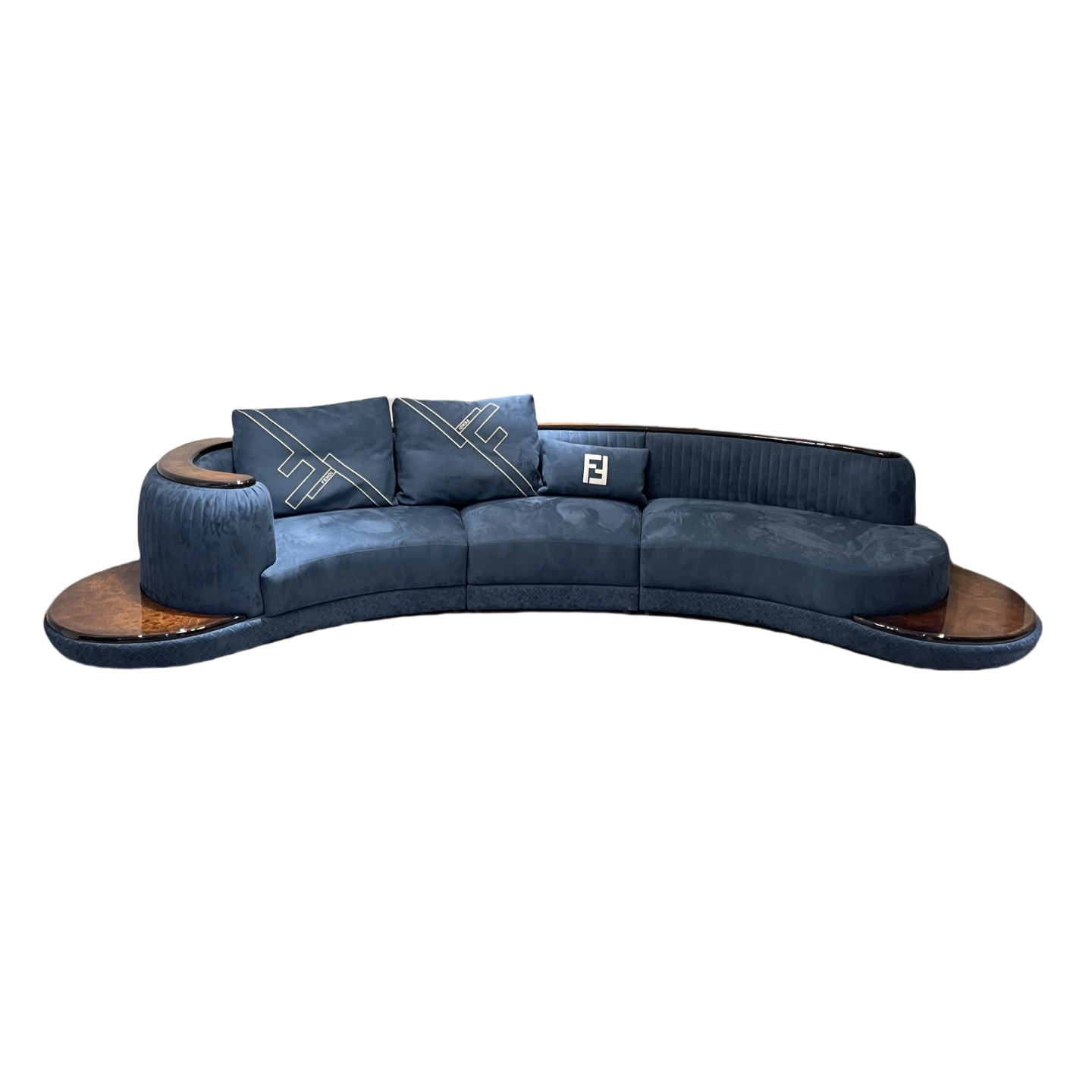 Italian-Style Light Luxury Sofa for Villa Mansion Living Room, Genuine Leather Suede Sofa, Solid Wood Lacquered Curved Yacht Sofa
