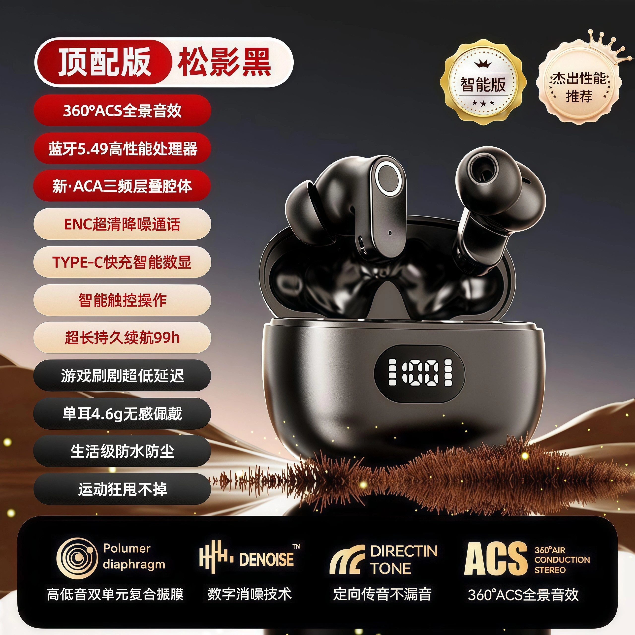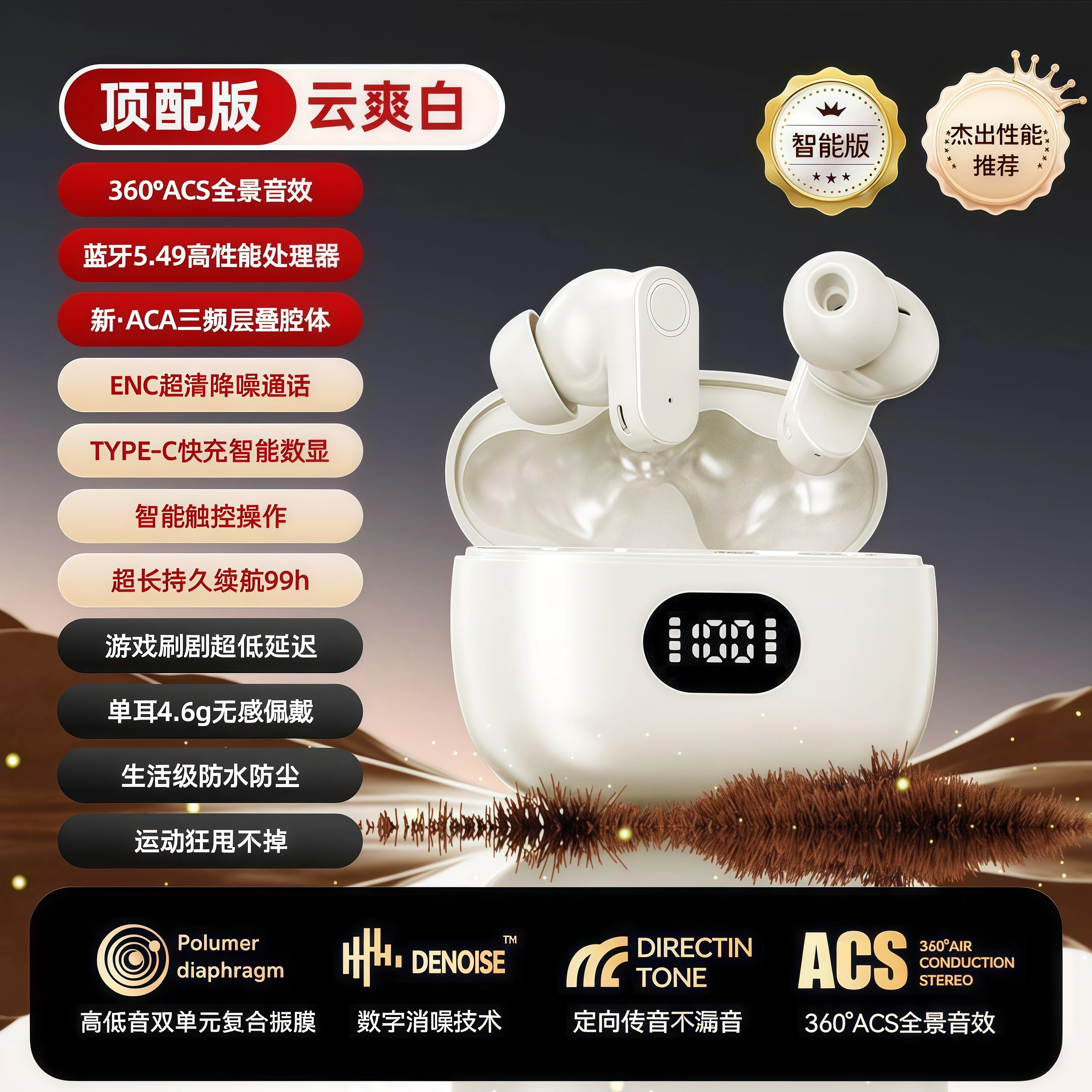 2025 New Short-Handle Wireless Bluetooth Earphones, In-Ear Noise Reduction, Ultra-Long Battery Life, Suitable for Sports, Students, Running, High Sound Quality