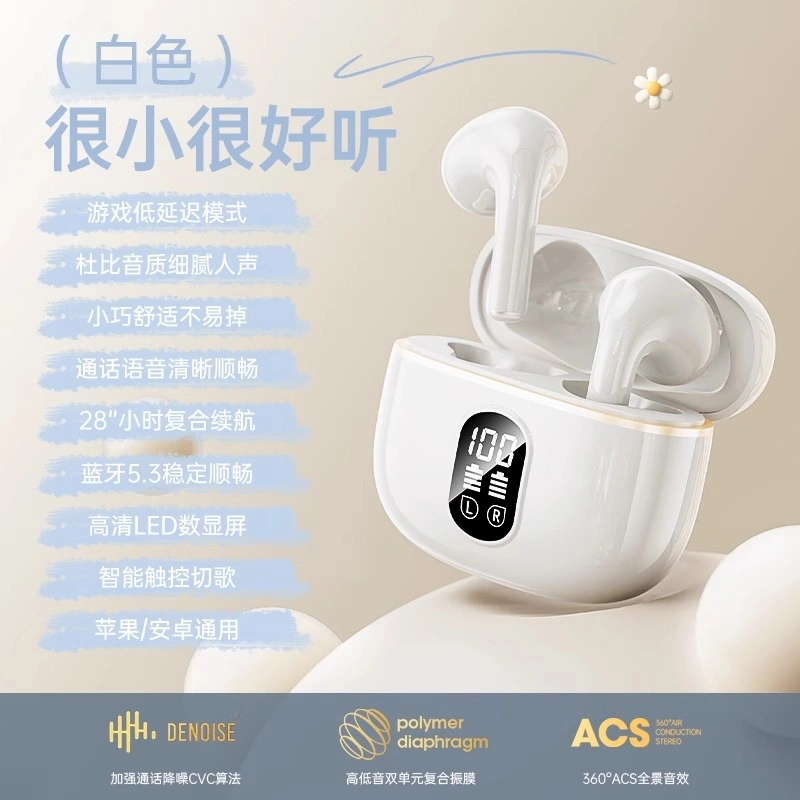 2025 New Wireless Bluetooth Earphones, Semi-In-Ear, High-Quality Sound, Noise Reduction, Suitable for Sports, Long-Lasting Wear Without Pain, Ultra-Long Battery Life