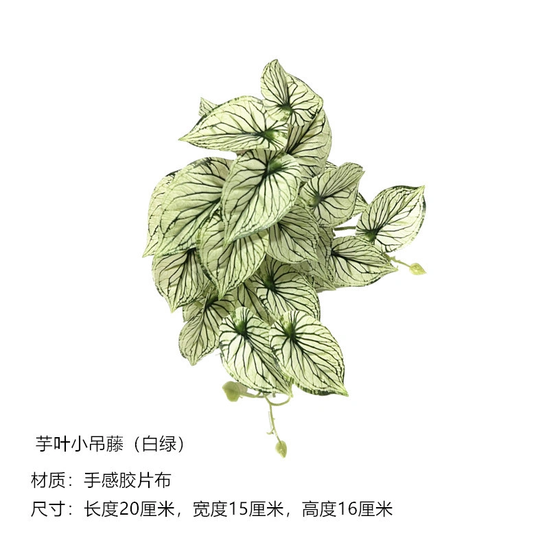 New Artificial Green Plant Wall Landscape Decoration with Small Hanging Vine Leaves, Watermelon Leaves, Begonia Leaves, and Taro Leaves