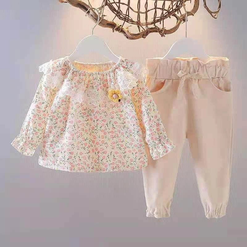 Korean Brand Baby Girl Spring and Autumn Clothing 2021 New Style Infant Children's Clothing Stylish Girl Spring and Autumn Clothes Princess Floral