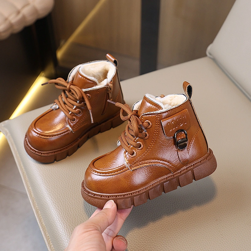 Kids Boots 2025 Fall and winter New arrival girl boots leather shoes Fleece-lined cotton Youth short boots for boys autumn