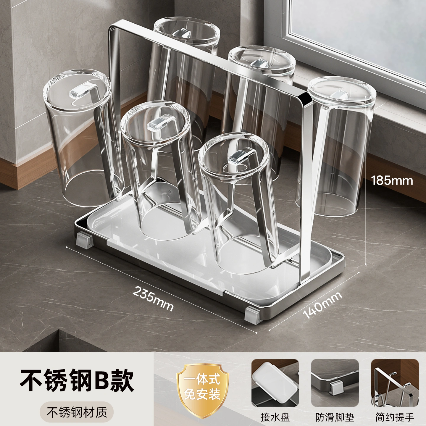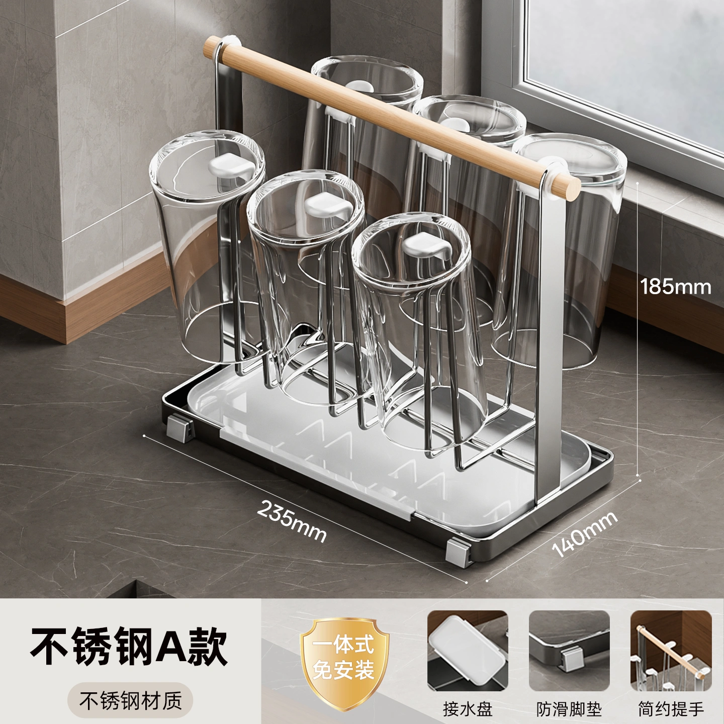 Stainless Steel Cup Drain Rack Table Top Water Cup Tea Cup Milk Bottle Mug Table Storage Shelf