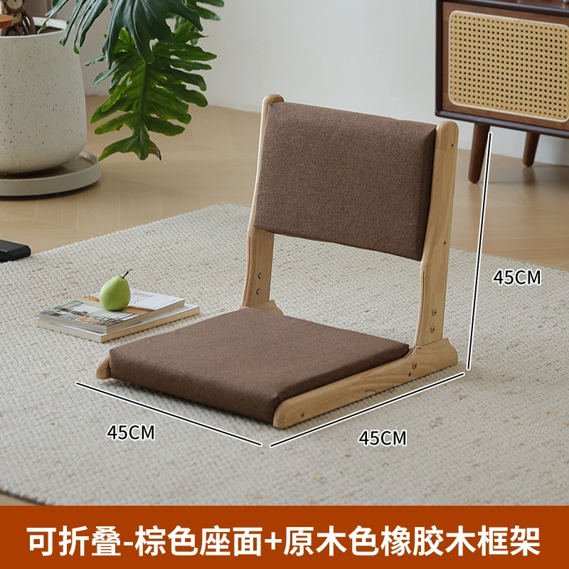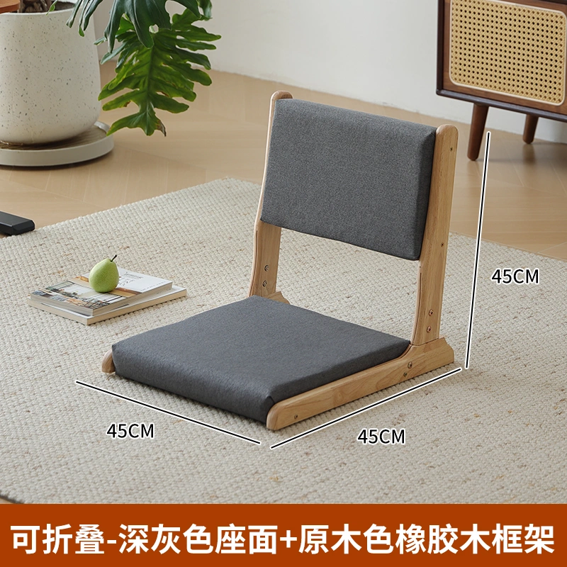 Solid Wood Foldable Tatami Backrest Chair and Room Chair Seat Japanese Style Legless Floor Sitting Balcony Bay Window Bean Bag Sofa