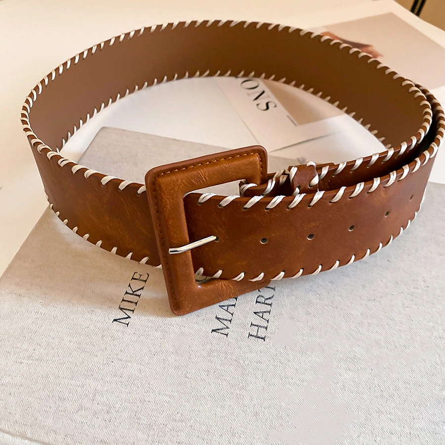 Maillard Retro Leather Knit Line Square Waist Chain Fall and winter Trendy Belt Belt Niche style Stylish Waist