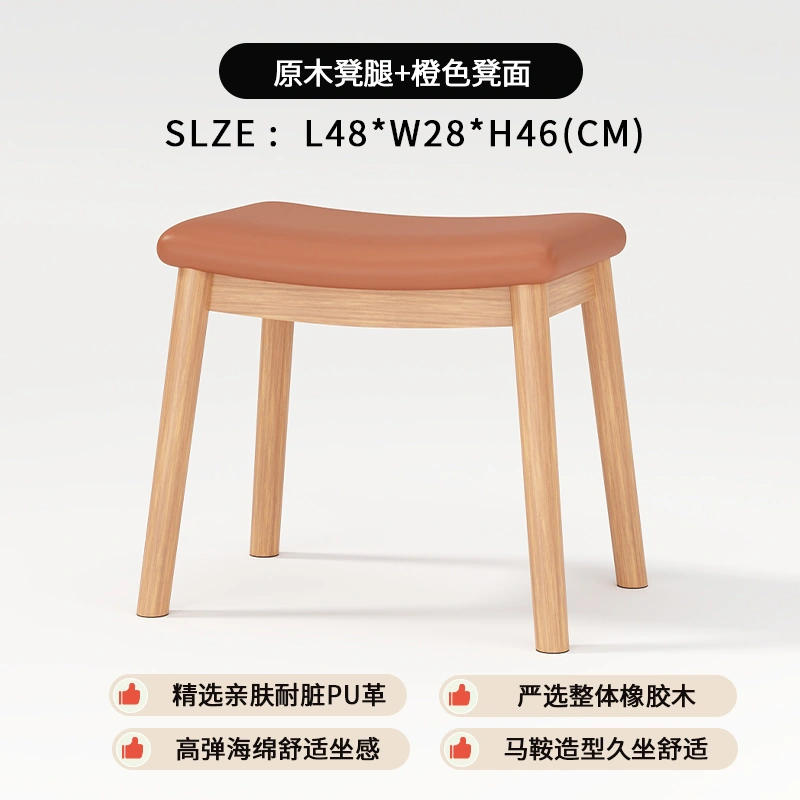 For Home Makeup Stool Solid Wood Stool Fancy Girl's Bedroom Dressing Stool Retro Minimalist Accessible Luxury Soft Bag Saddle Stool