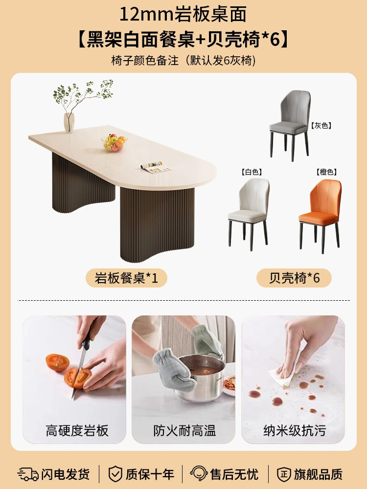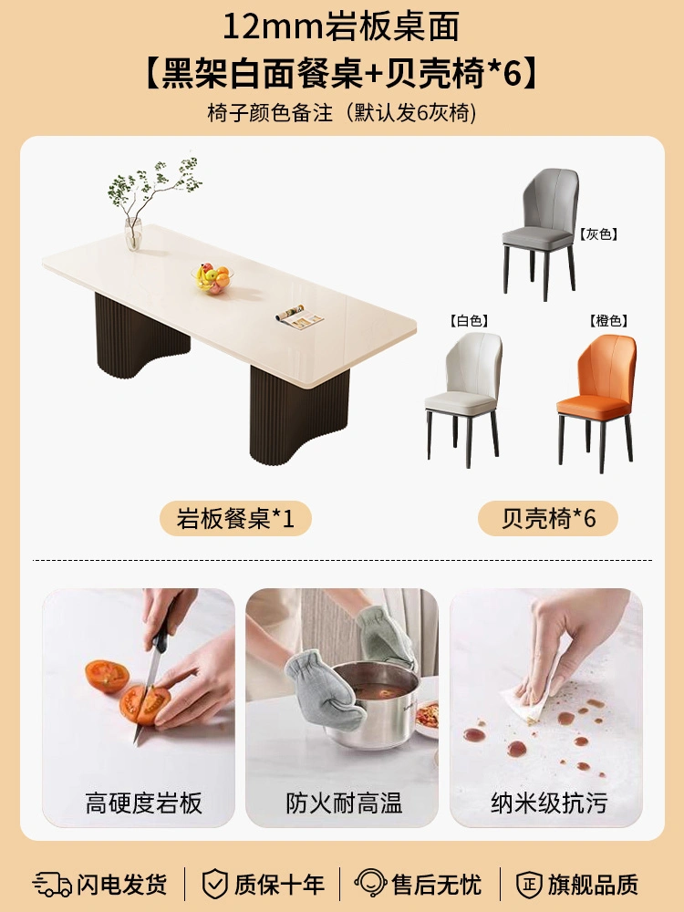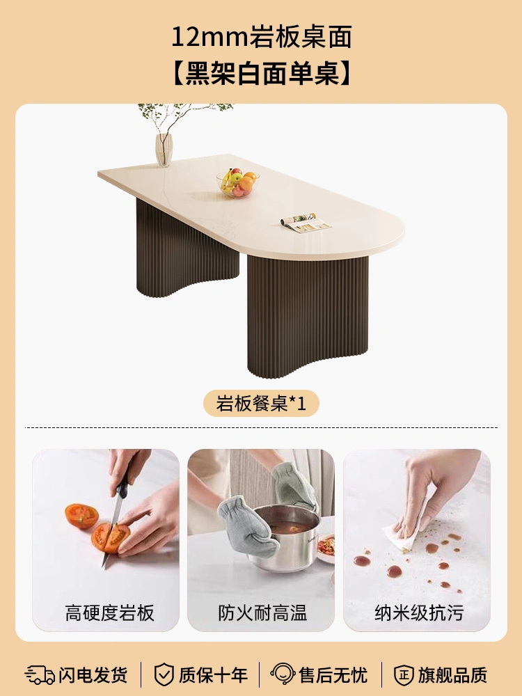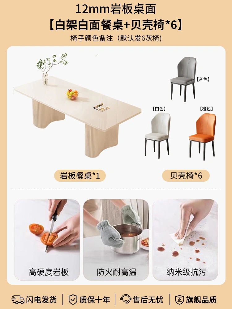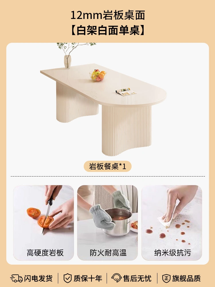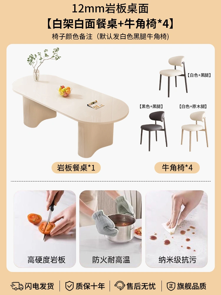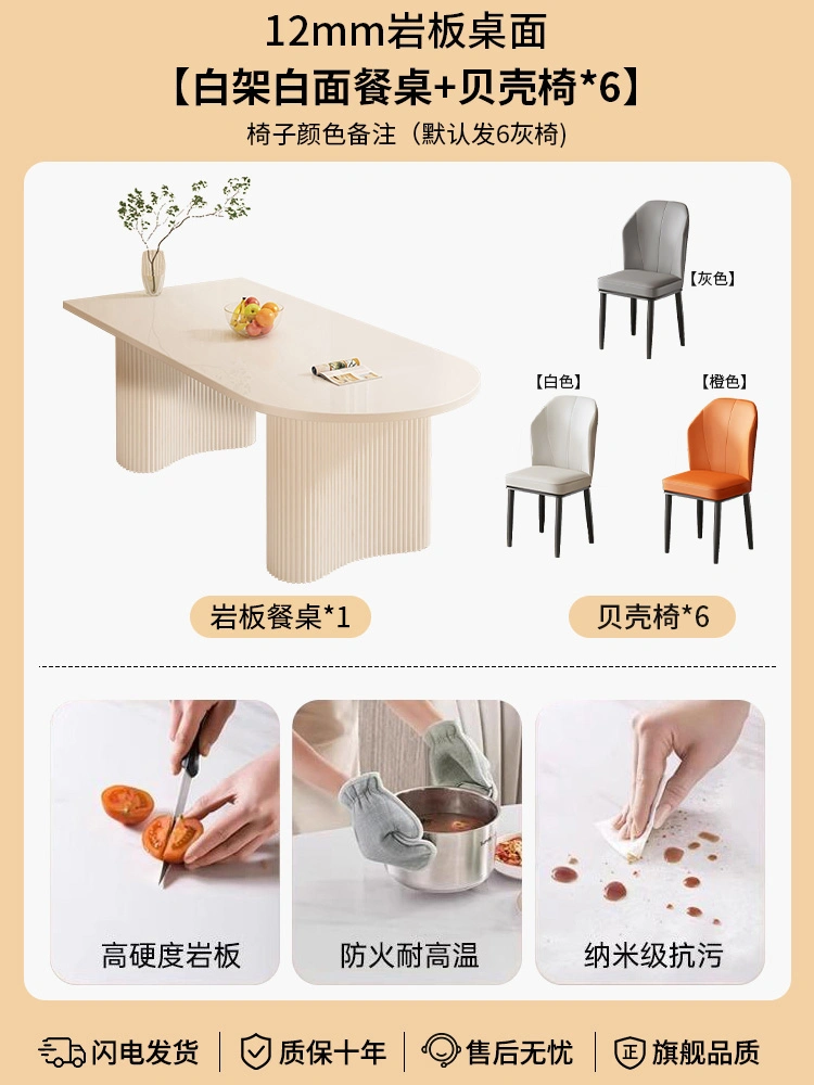 Rock Board Dining Table For Home Small Apartment Island Table One-piece Rice Table Modern Minimalist Accessible Luxury Cream Style Dining Table and Chair Combination