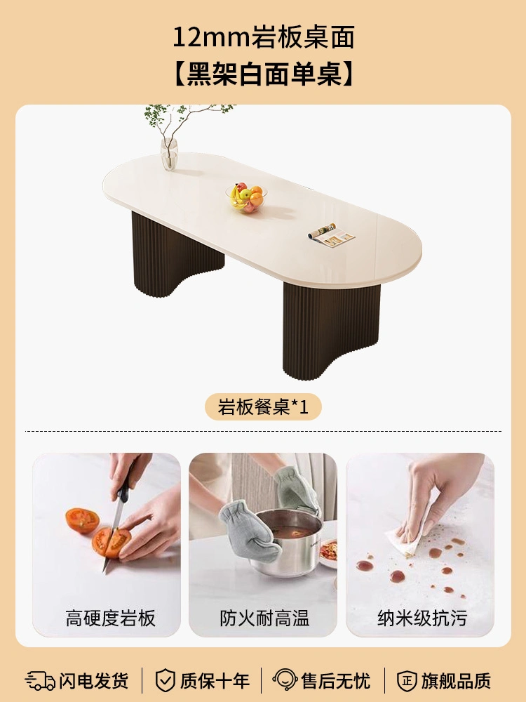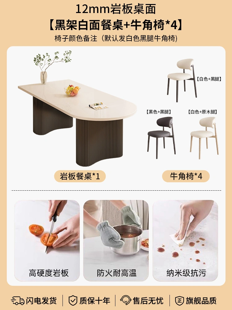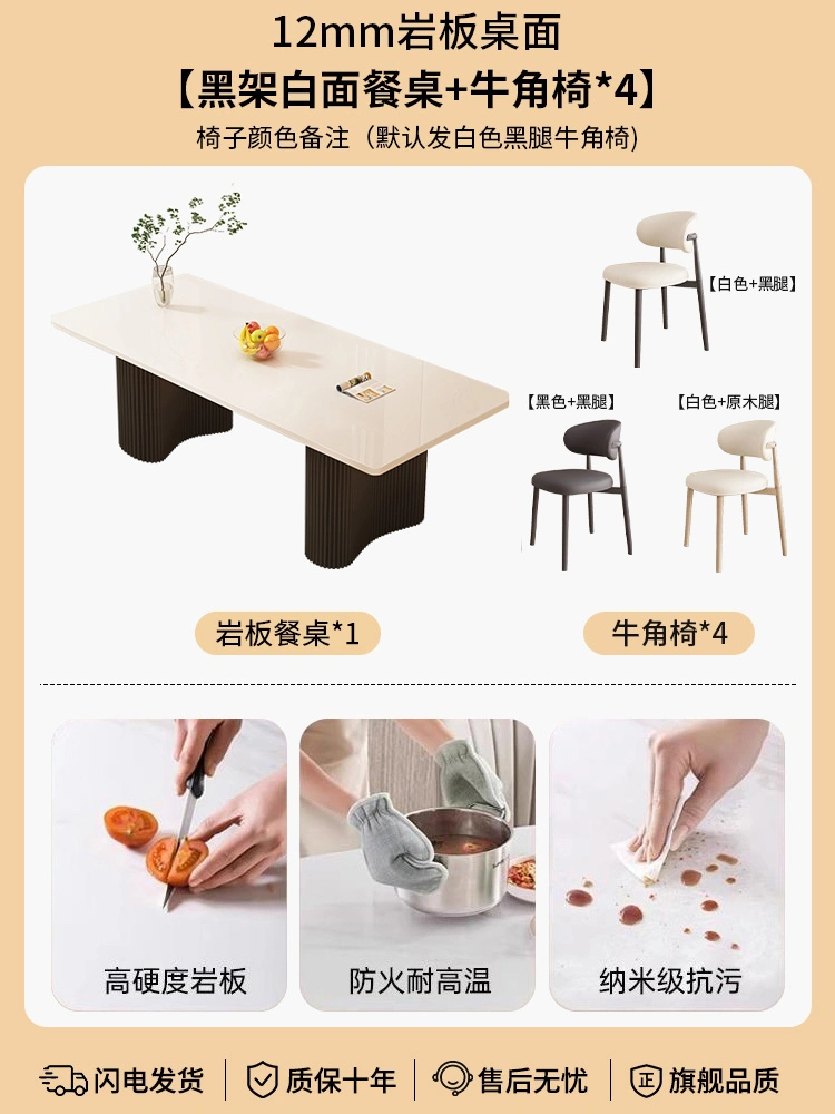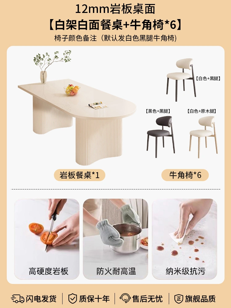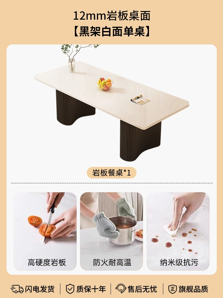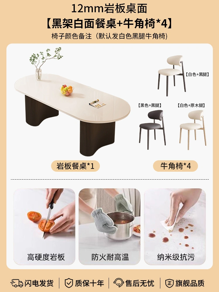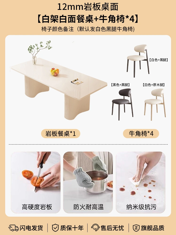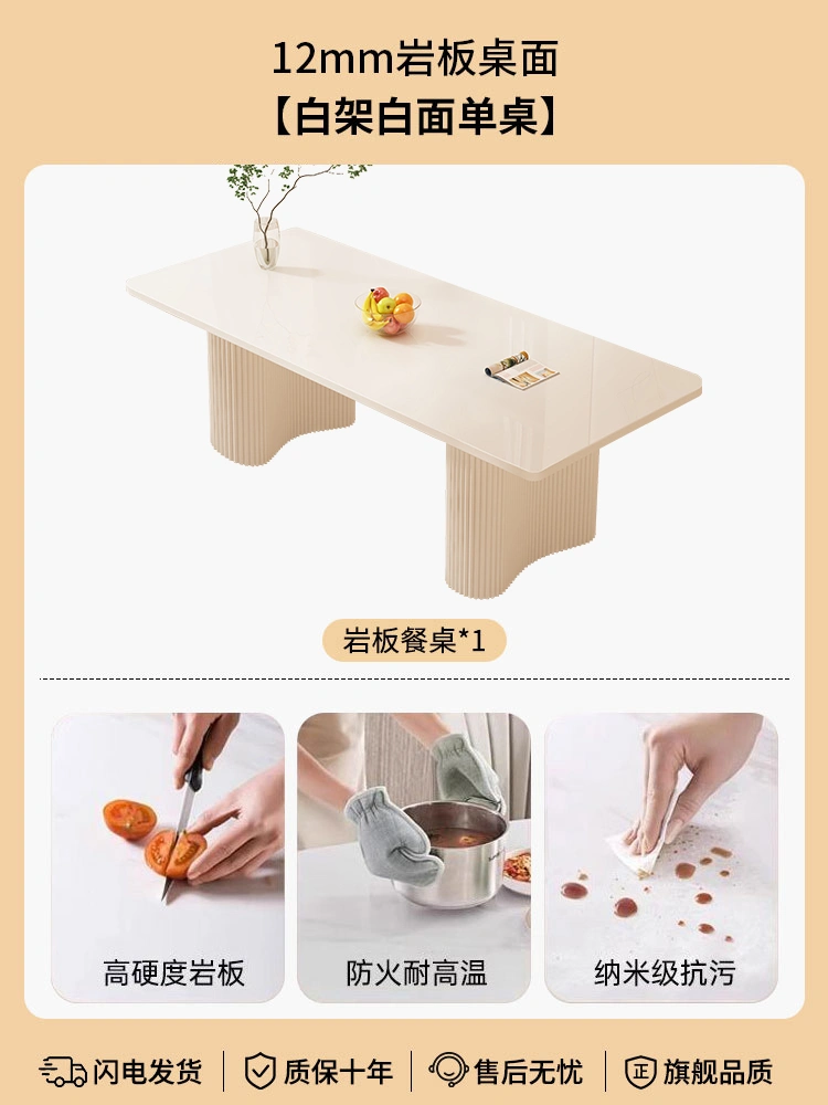 Rock Board Dining Table For Home Small Apartment Island Table One-piece Rice Table Modern Minimalist Accessible Luxury Cream Style Dining Table and Chair Combination
