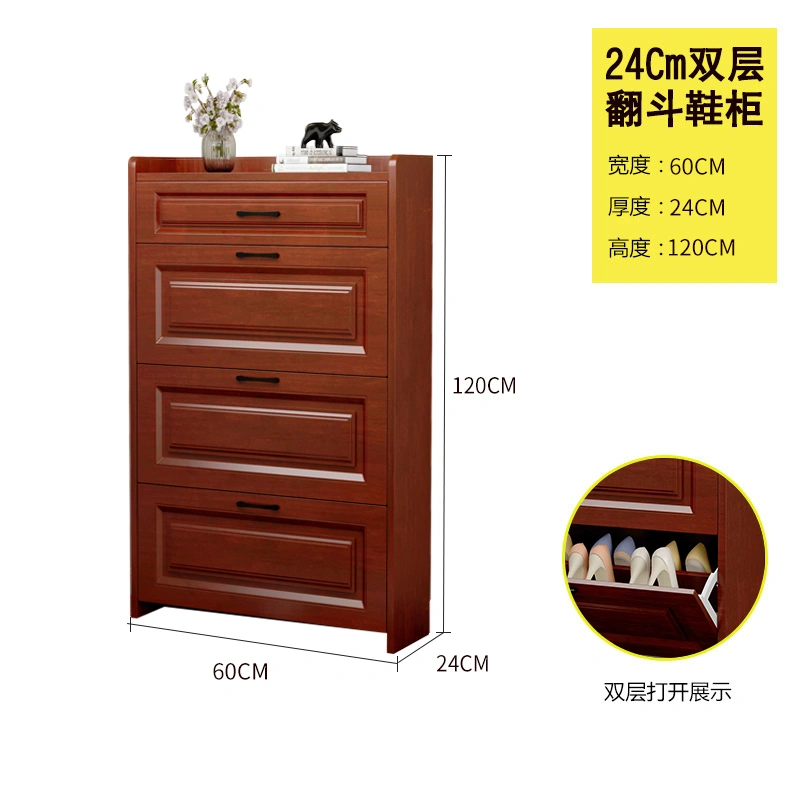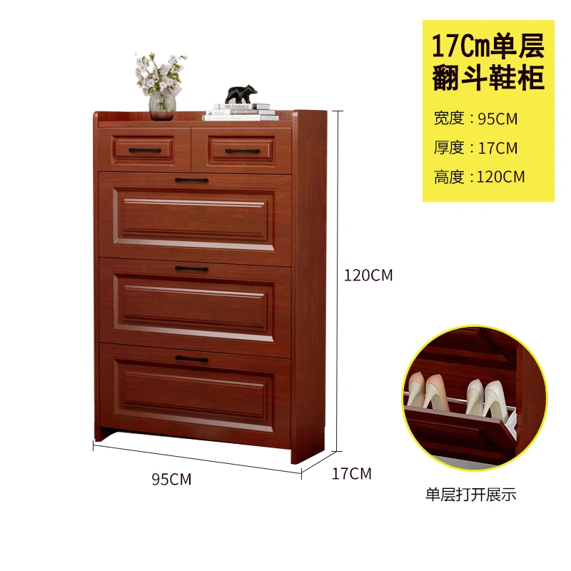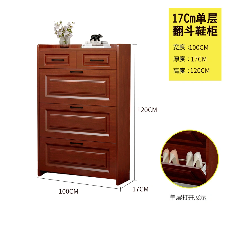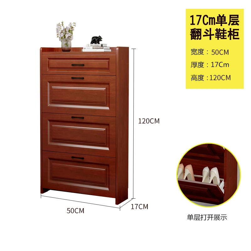 Genji Muyu Modern Chinese Ultra-thin Flip Bucket Shoe Cabinet For Home Doorway Easy Entry Narrow Entrance Hall Redwood Color Space-saving