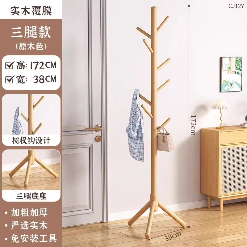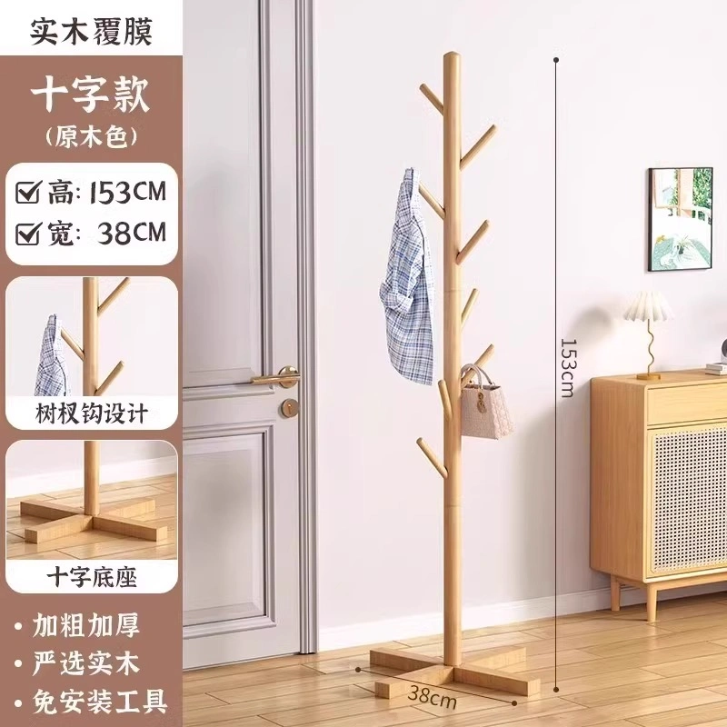 Solid Wood Coat Rack Floor Hanger Living Room Office Room Bedside Dormitory For Home Vertical Clothes Hanging Rack