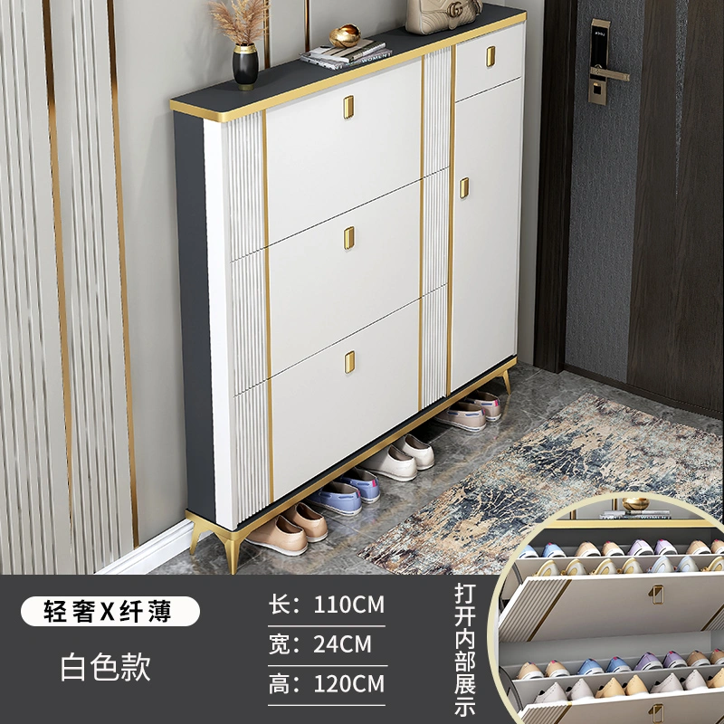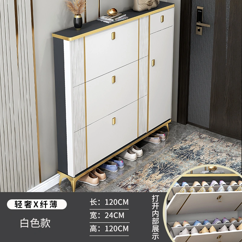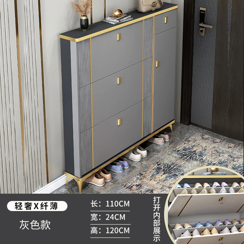Genji Muyu Accessible Luxury Ultra-thin Tipping Bucket Shoe Cabinet For Home Doorway Large Capacity Storage Entrance Cabinet Minimalist Modern Outside Door