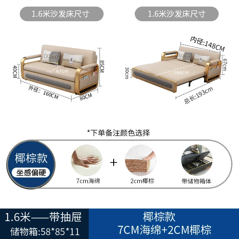 Genji Muyu Sofa Bed Dual-purpose Accessible Luxury Technology Cloth Foldable Multi-functional Living Room Small Apartment Telescopic Push-pull Real