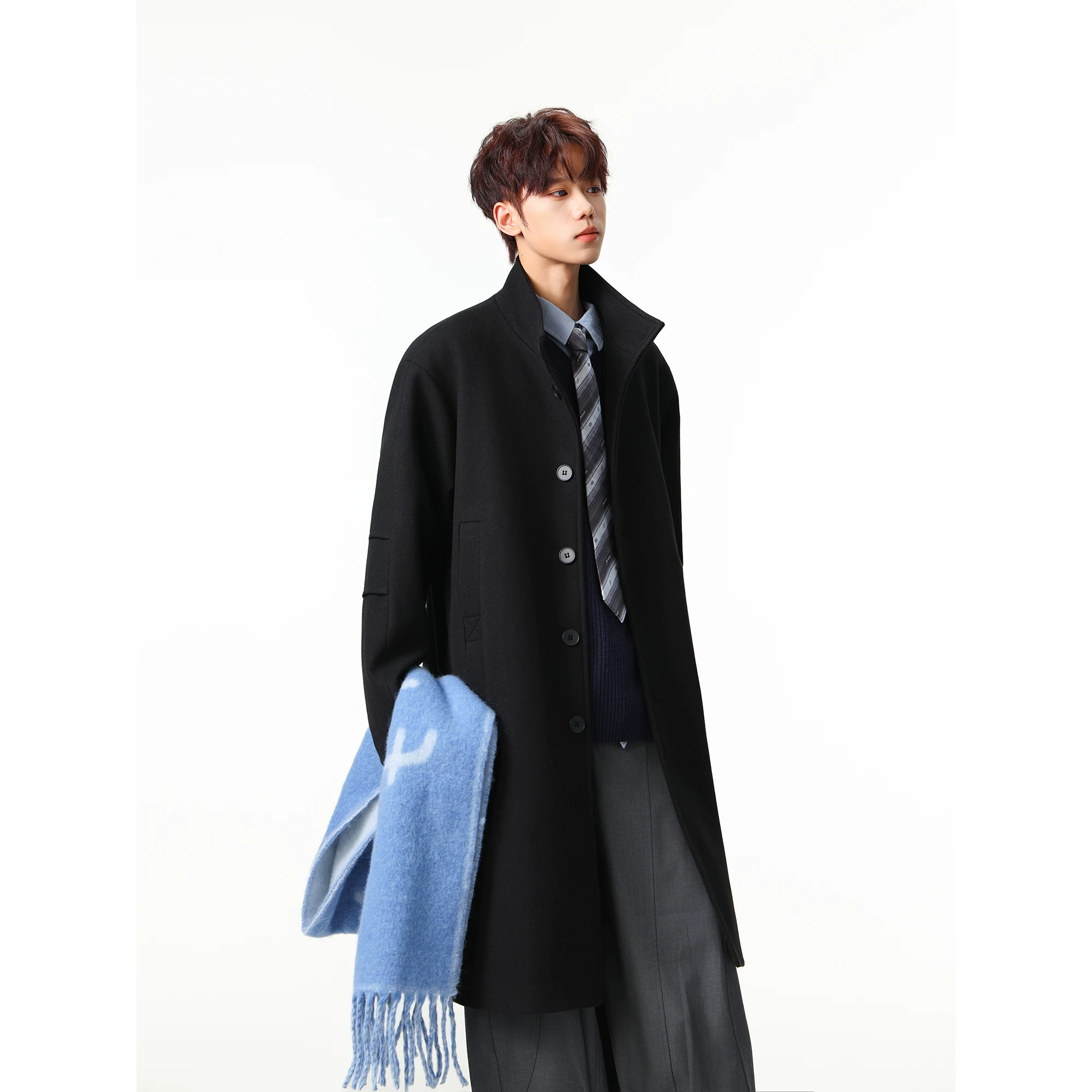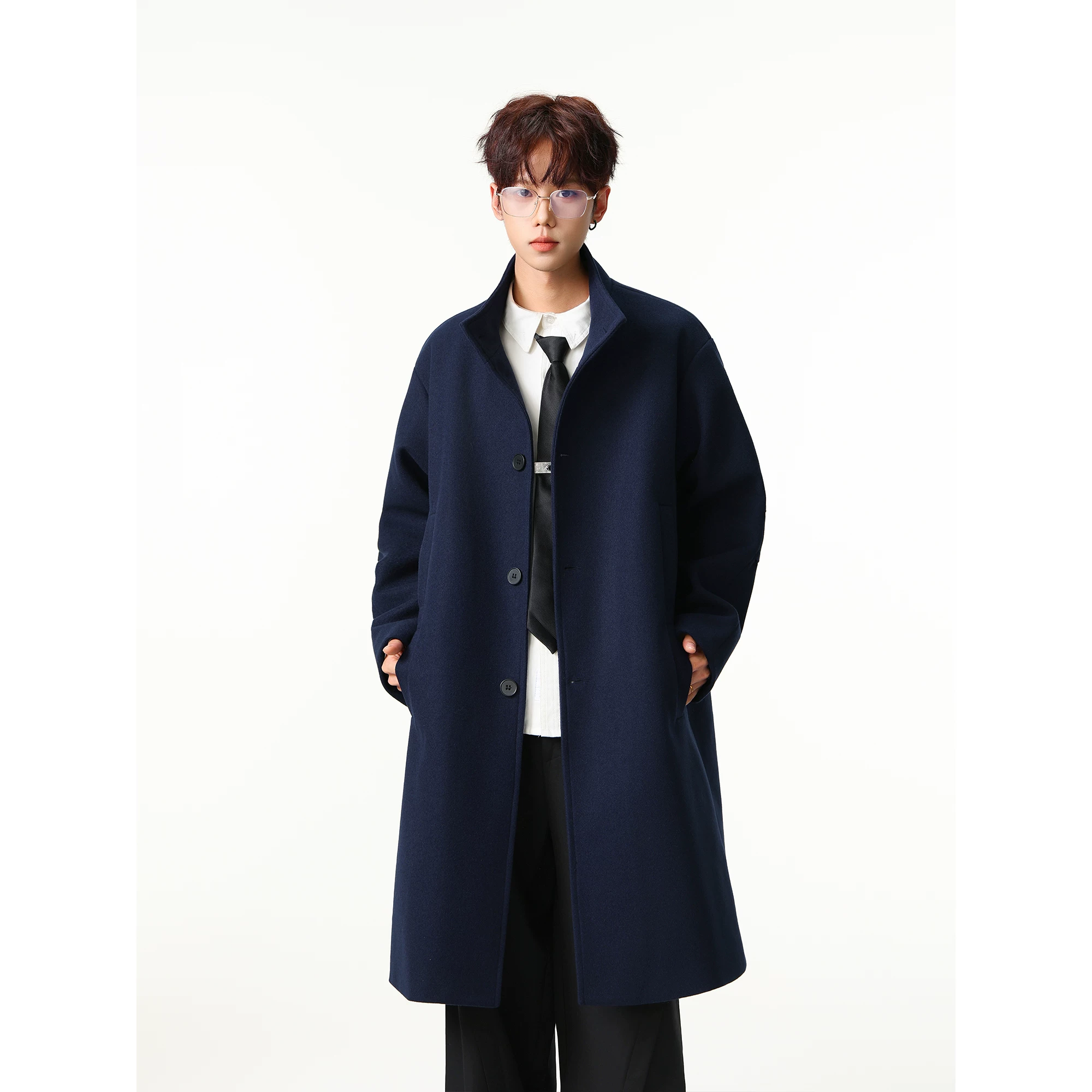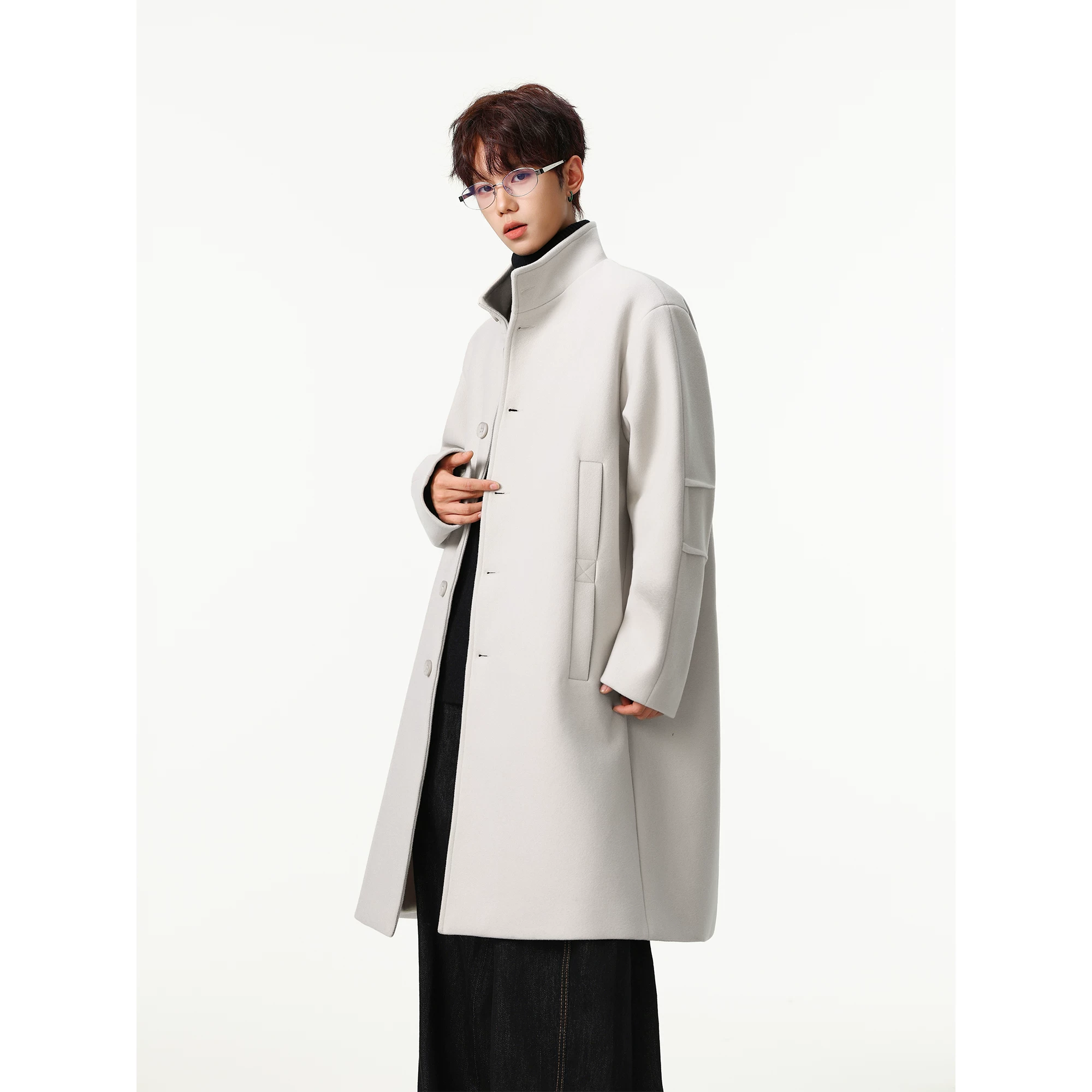 British Style Single-Breasted Woolen Coat for Men, New Autumn and Winter Trendy Brand Loose Mid-Length Stand Collar Trench Coat