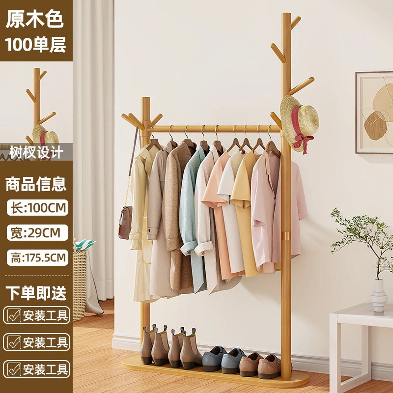 Solid Wood Coat Rack Floor Bedroom For Home Hangers Room Bed End Clothes Handy Gadget Corner Rack at Night