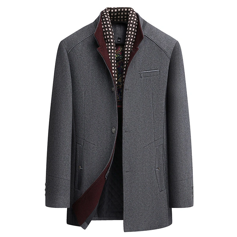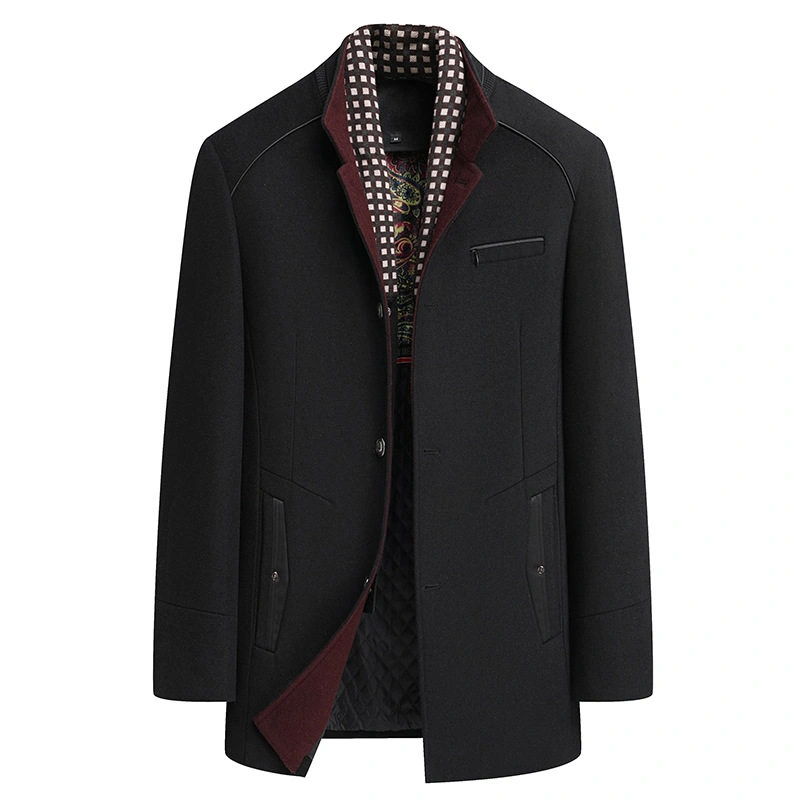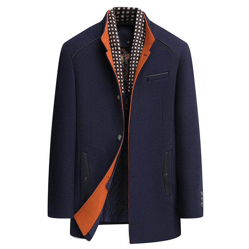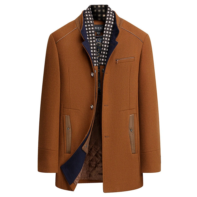 European and American Cross-Border Men's Woolen Overcoat with Cotton Lining and Thickened Scarf Collar Men's Jacket