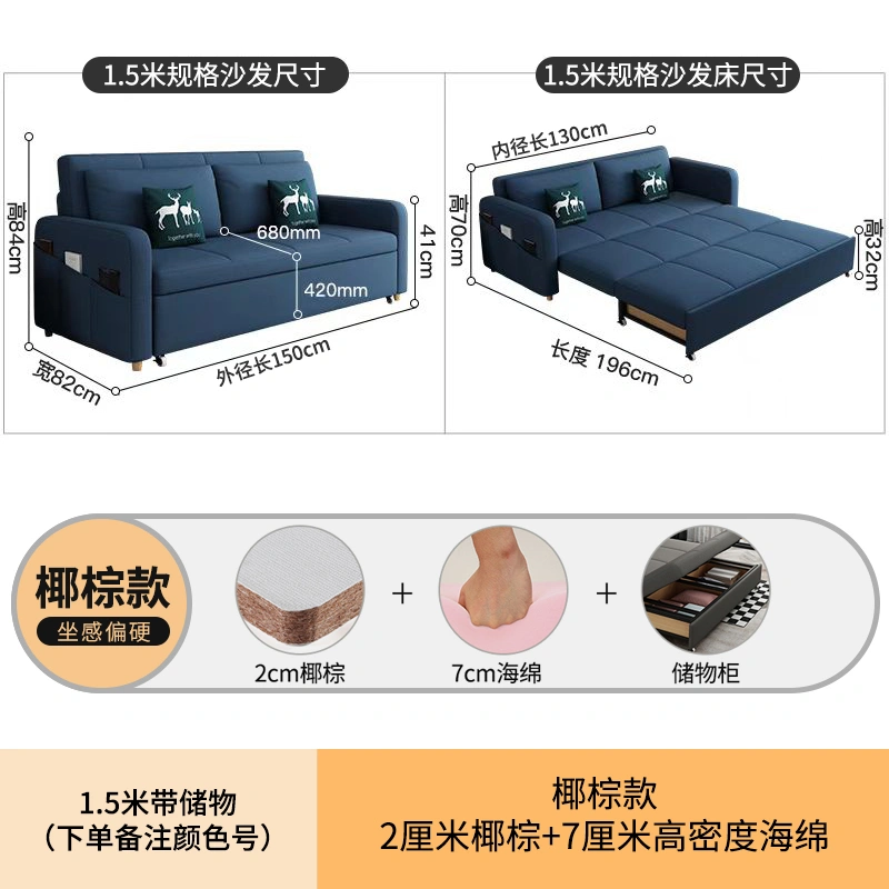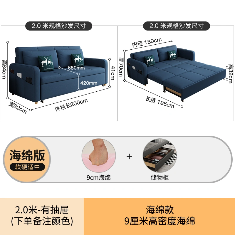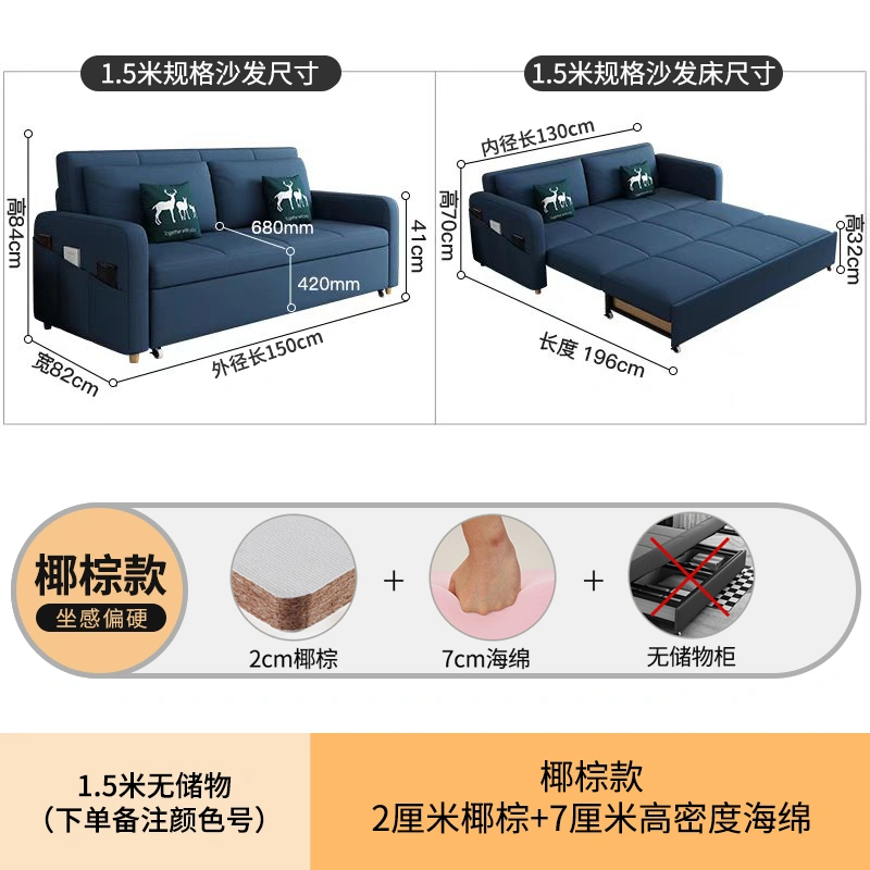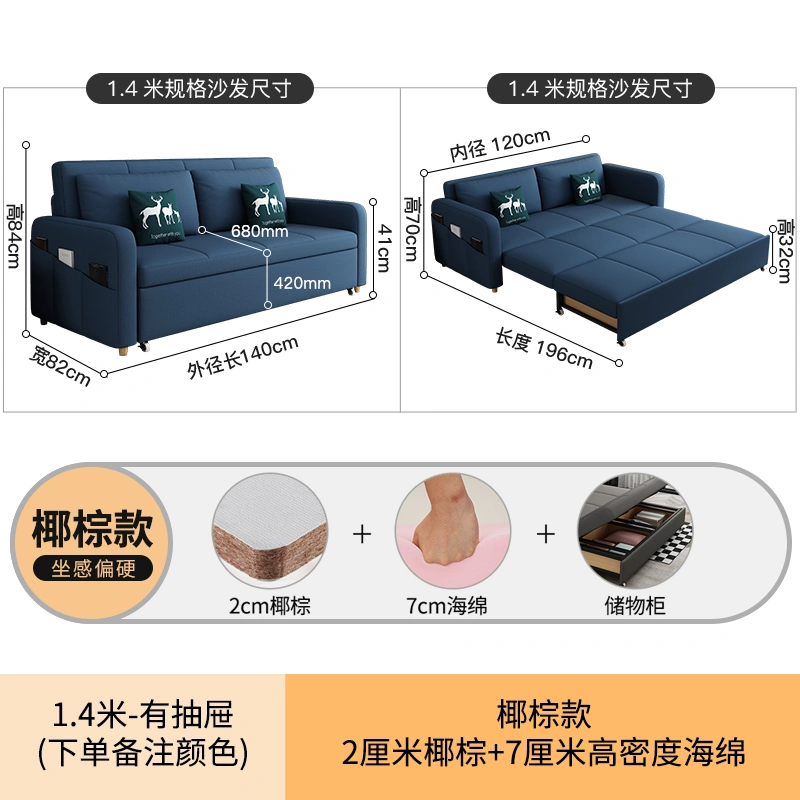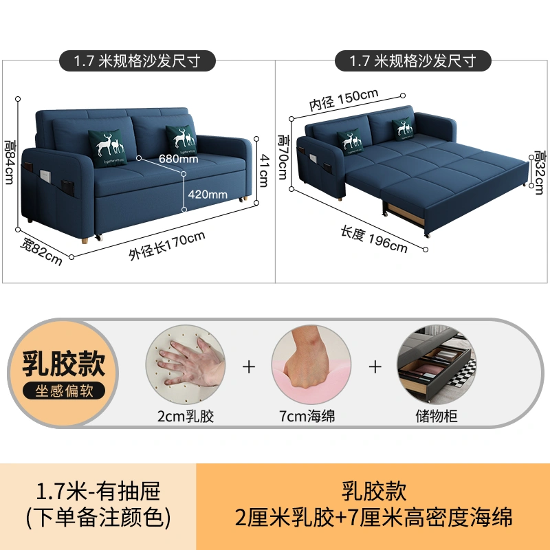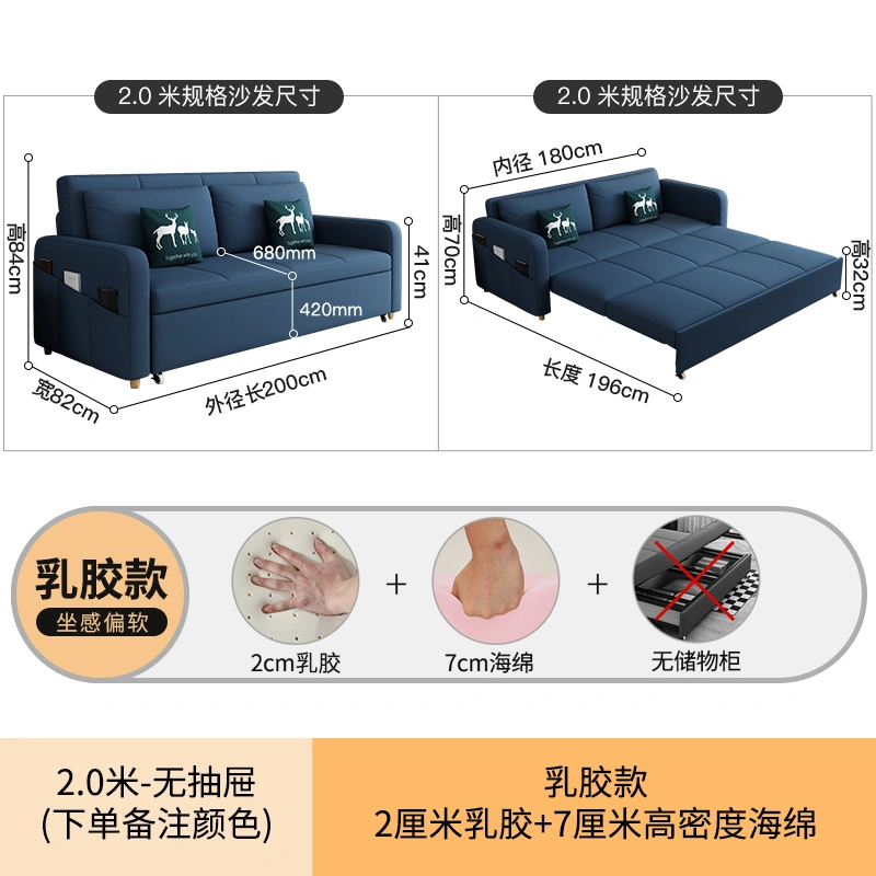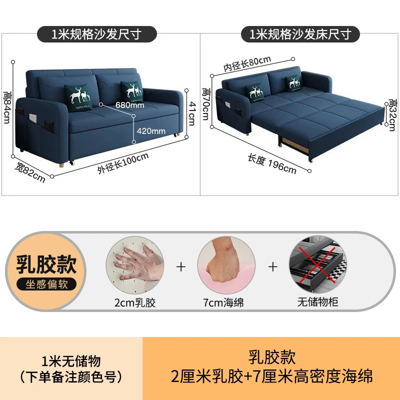 Genji Muyu Sofa Bed Foldable Bed Latex Sitting Multi-function Retractable Single Double Living Room Small Apartment