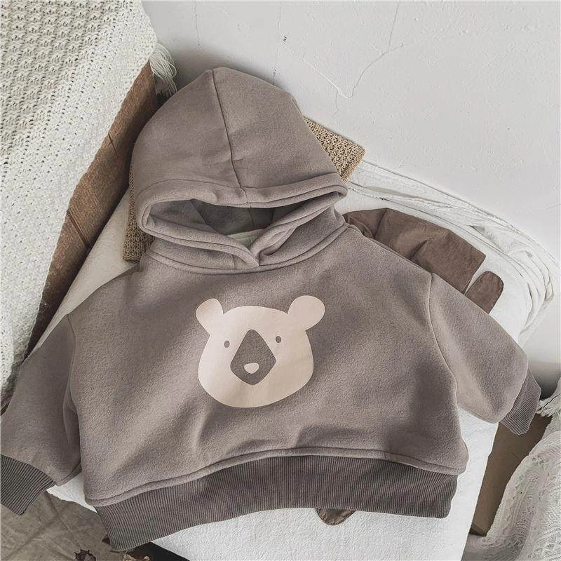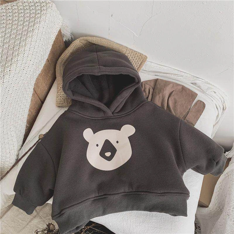 Baby Autumn and Winter Clothing Korean Style Infant Hooded Double-Layer Sweatshirt for Boys and Girls Loose Fleece-Lined Sweatshirt Toddler Jacket