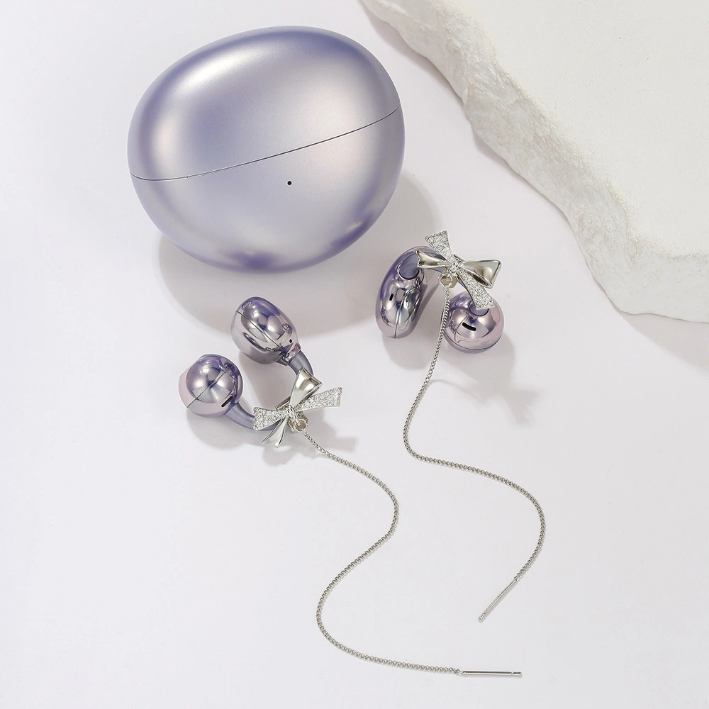Suitable for Freeclip2 Generation Ear Clip Headphones, Glossy Bow Ear Wire, Anti-Lost Chain, Diamond Buckle, DIY Small Decoration for Women