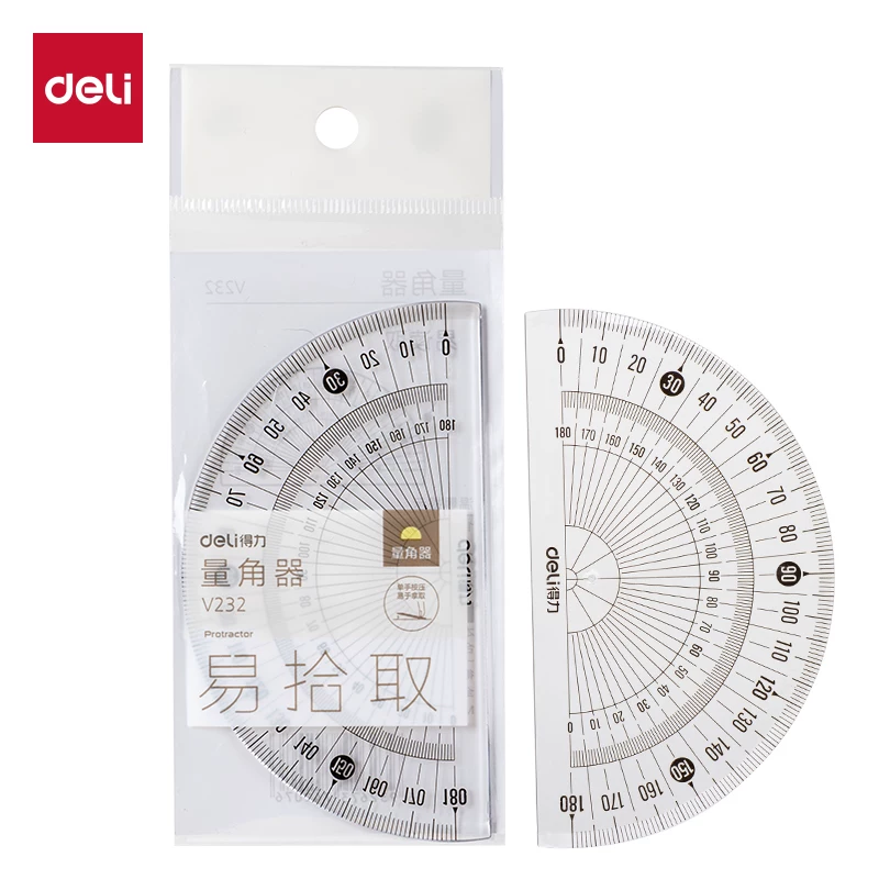 Deli Student Transparent Plastic Protractor with Thickened Clear Scale, Semicircular Ruler, 180-Degree Drawing Angle Ruler, 360-Degree
