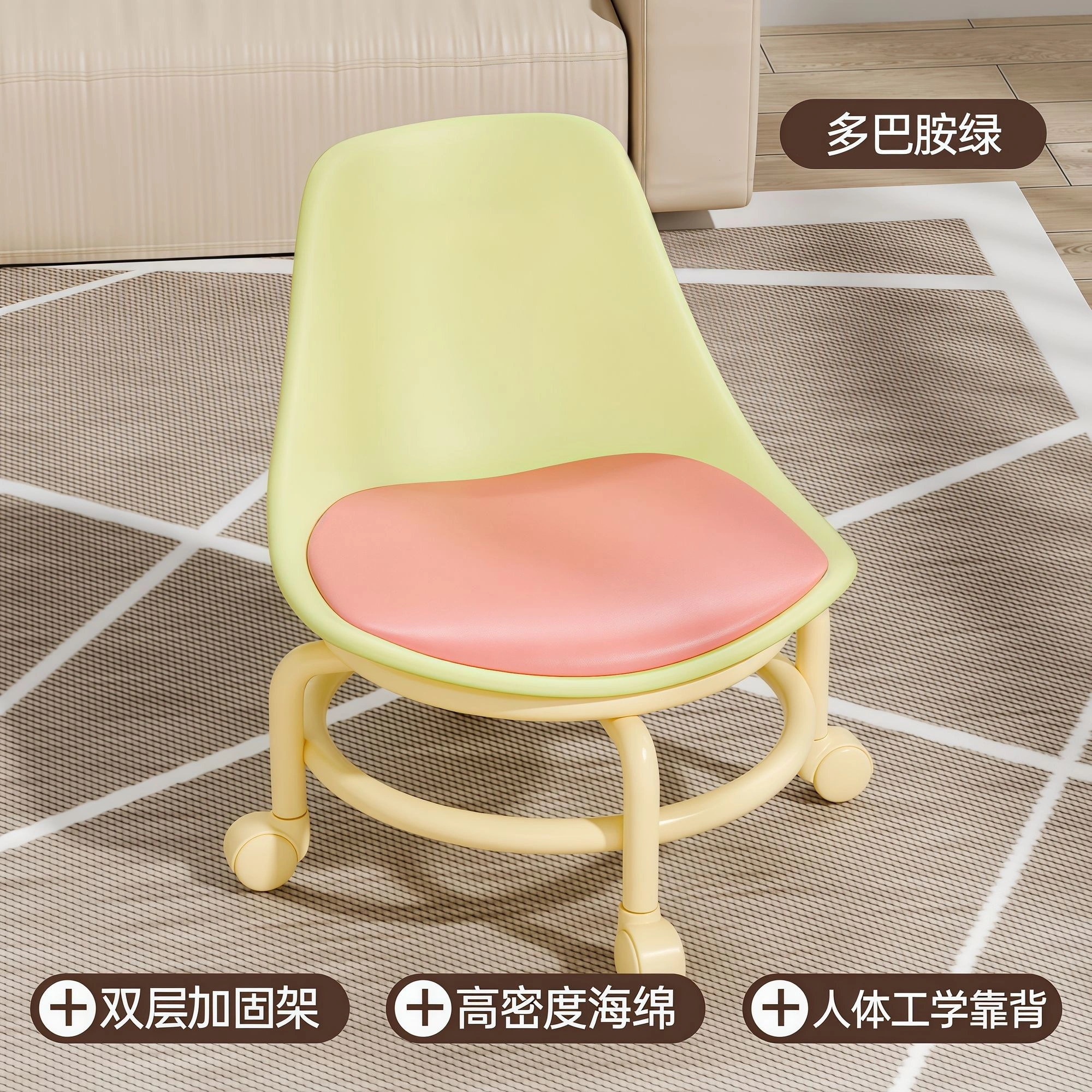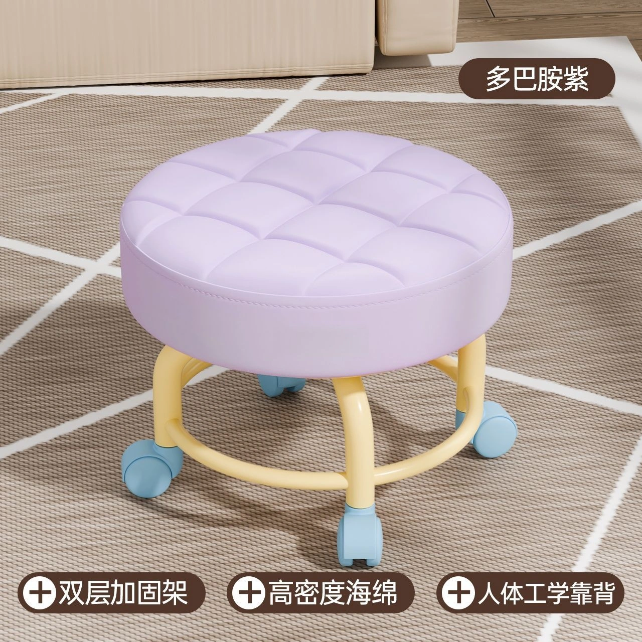 Dopamine Cream Wind Universal Wheel Small Stool Pulley Low Stool Movable For Home Bench Living Room with Baby's Step Chair