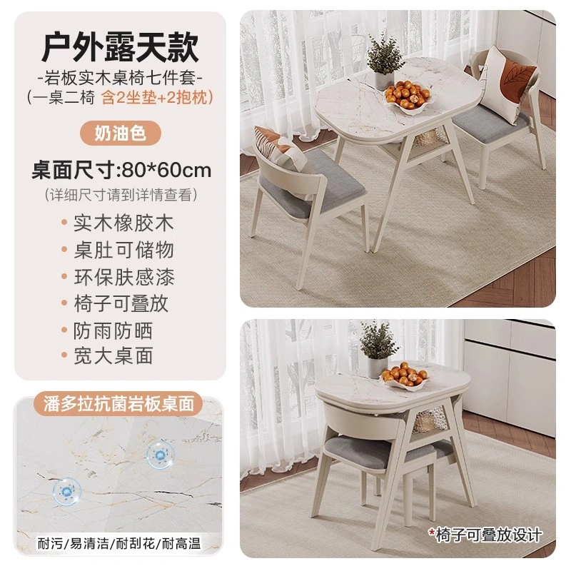 Cream Wind Tea Table with Electric Ceramic Stove Rock Board Table Table for Tea-making Integrated Tea Table Table Small Balcony Leisure Area Table and Chair