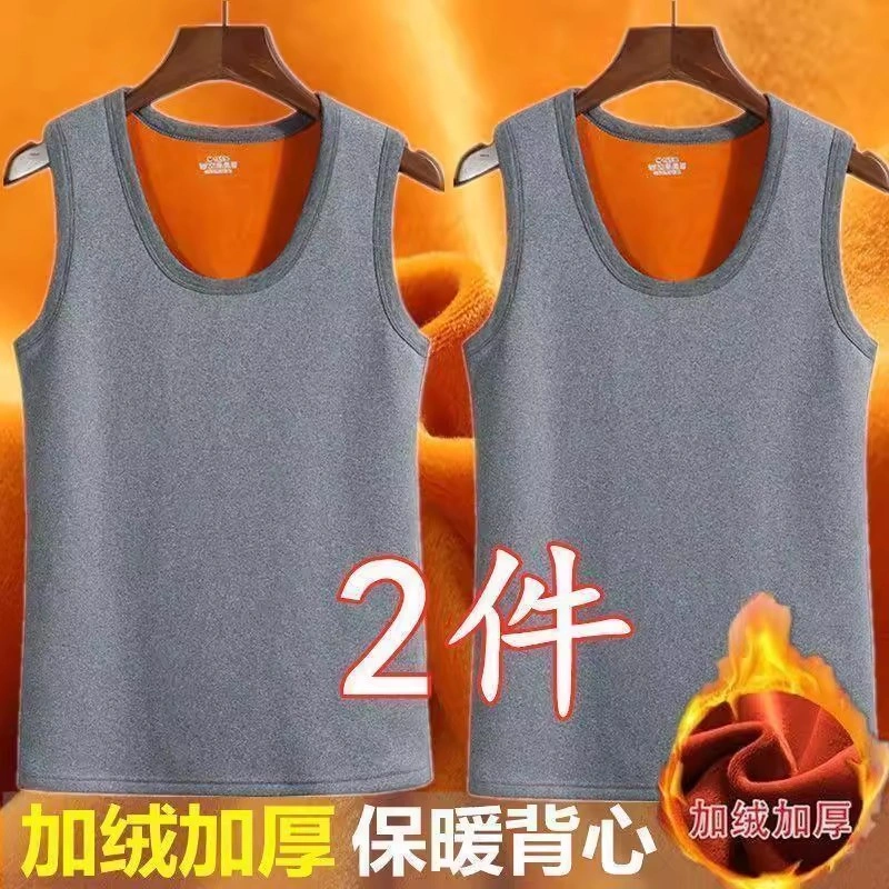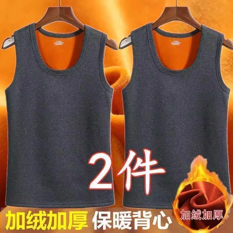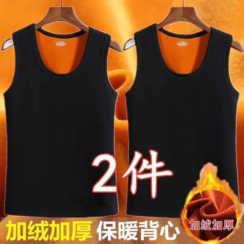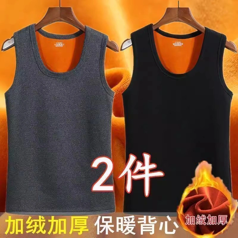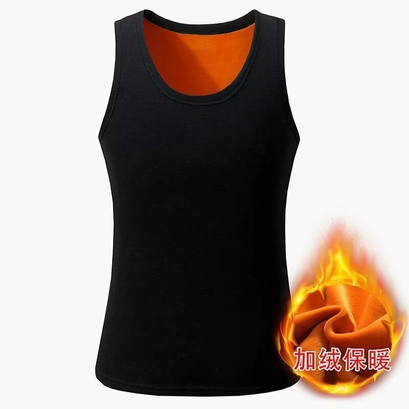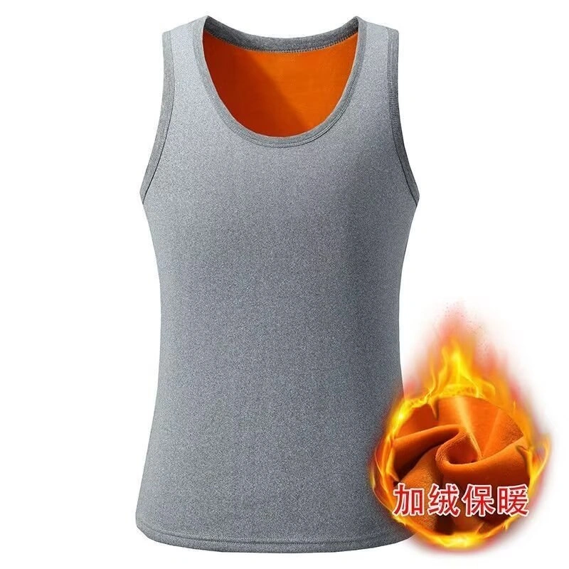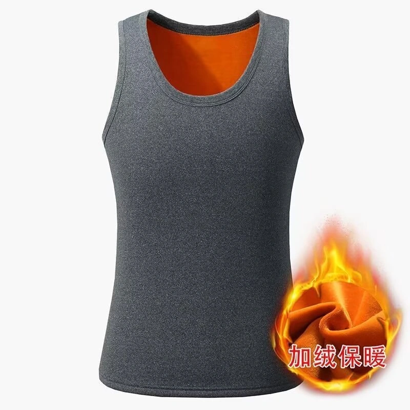 Men's Fleece-Lined Thick Warm Vest, Large Size, Close-Fitting, Autumn and Winter Inner Wear, Thick Vest, Base Layer Shirt, Solid Color Top