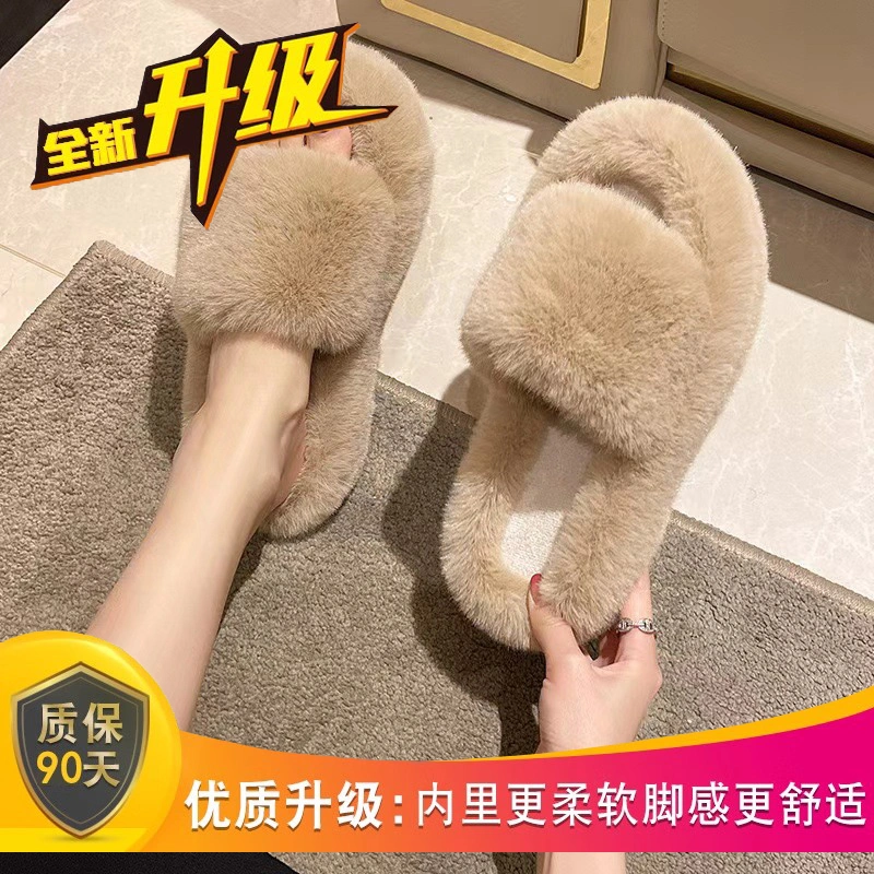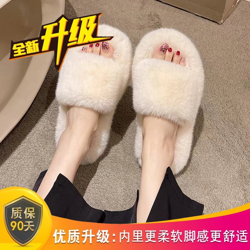 High-End Furry Slippers for Women, Suitable for Outdoor Wear in Autumn and Winter 2025, New Korean-Style Chic Trendy Slippers, Slip-On Cotton Slippers