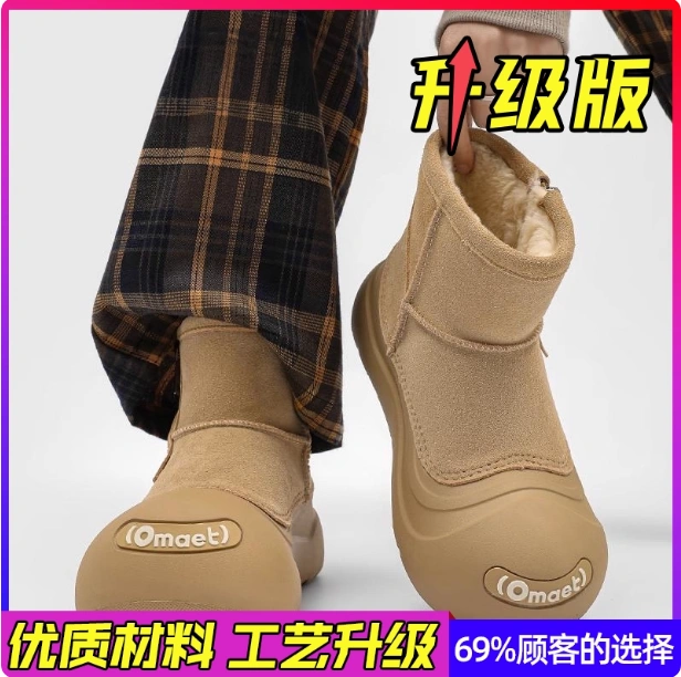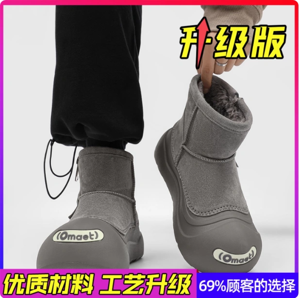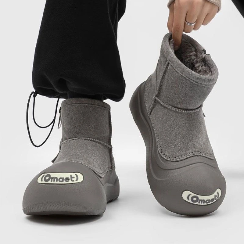 Cute and Quirky Big-Headed Couple Snow Boots for Men and Women, Winter Fleece-Lined and Thickened, Northeastern Open-Mouthed Smiling Cotton Shoes, Non-Slip Boots