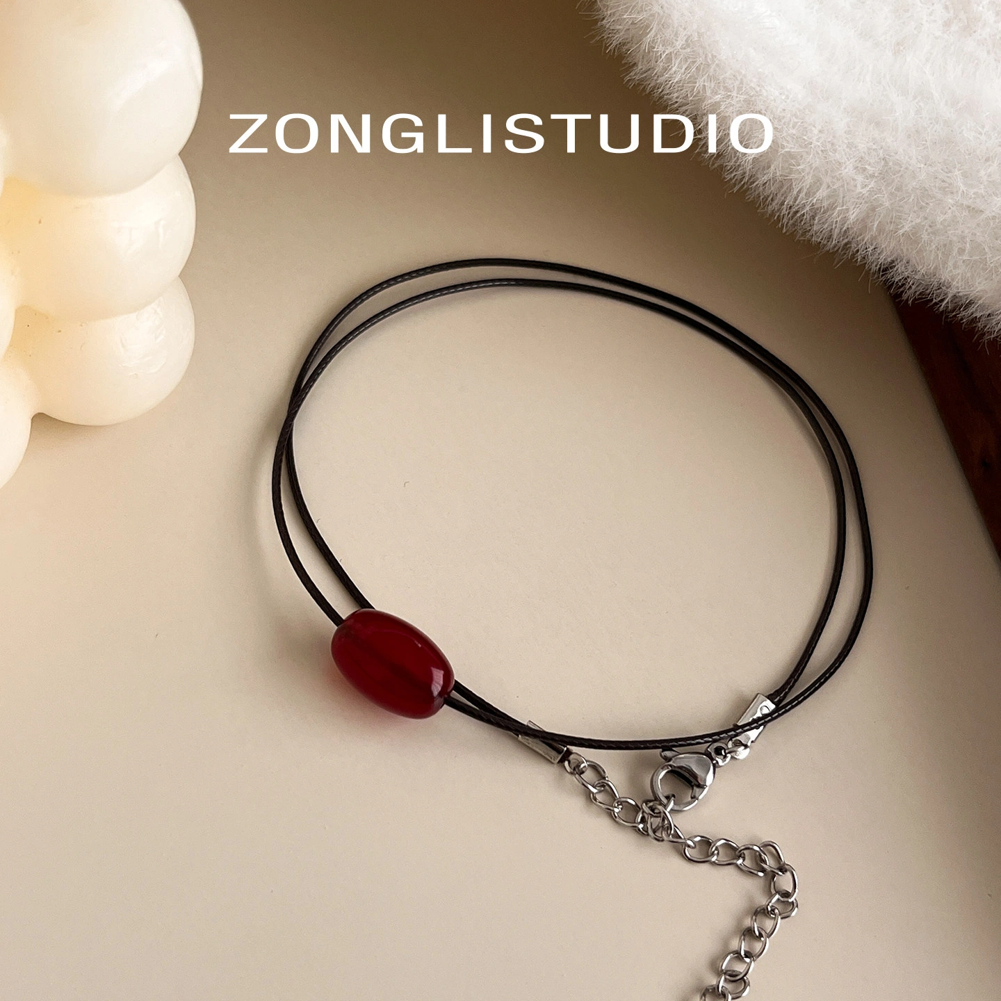 Z10 Red Resin Black Rope Necklace for Women, Simple, High-End, Fashionable and Trendy Neck Chain, Clavicle Chain