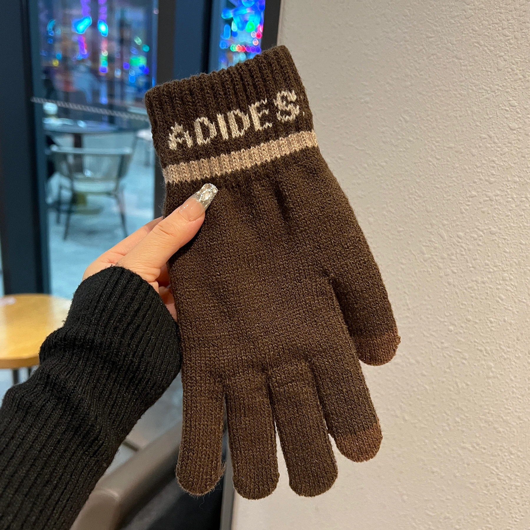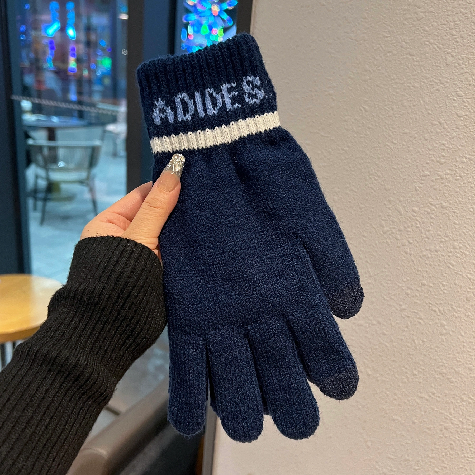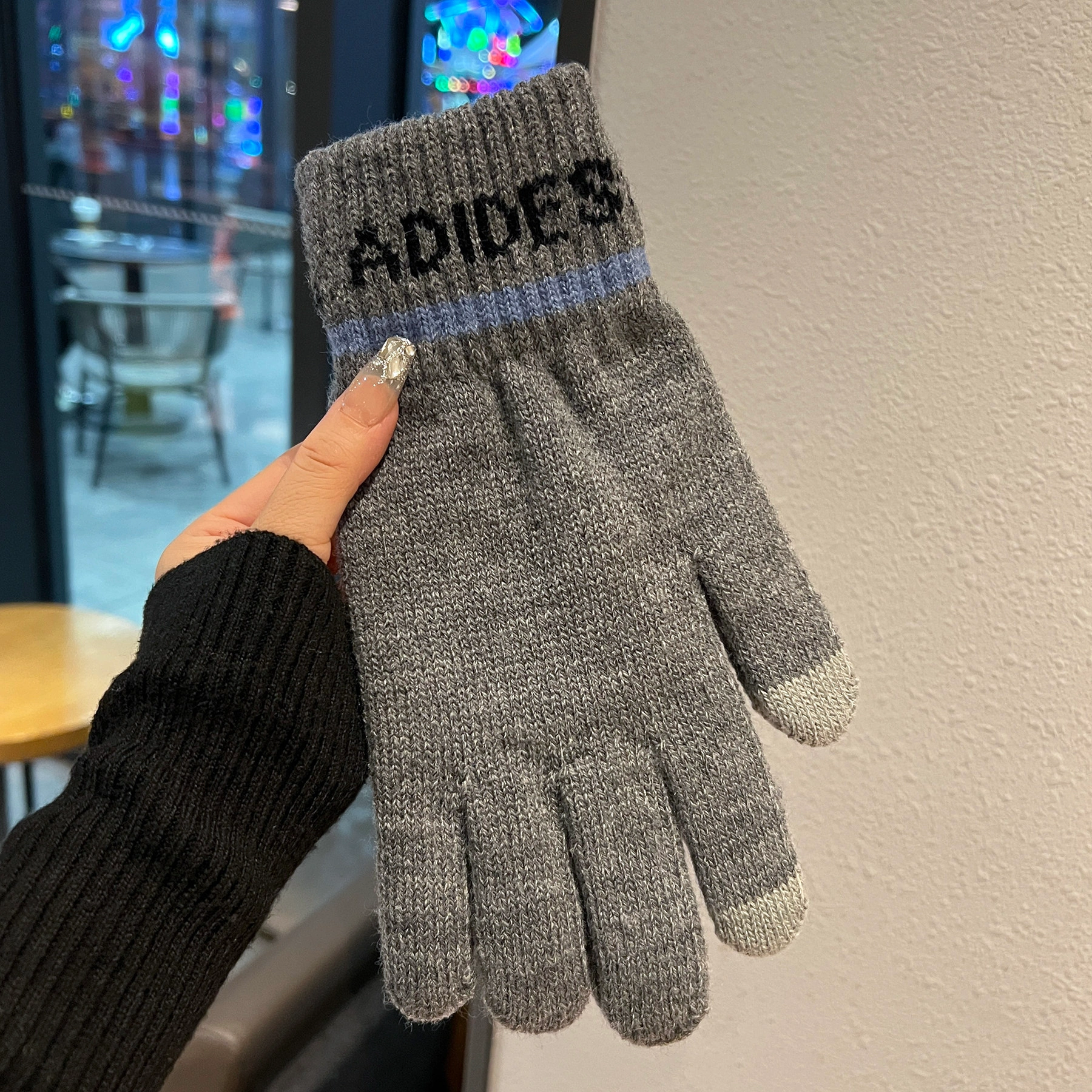 Large Men's Winter Touchscreen Gloves, Cold-Proof, Warm, Fleece-Lined, Knitted Cotton Gloves, Large Size, Five-Finger Gloves for Driving