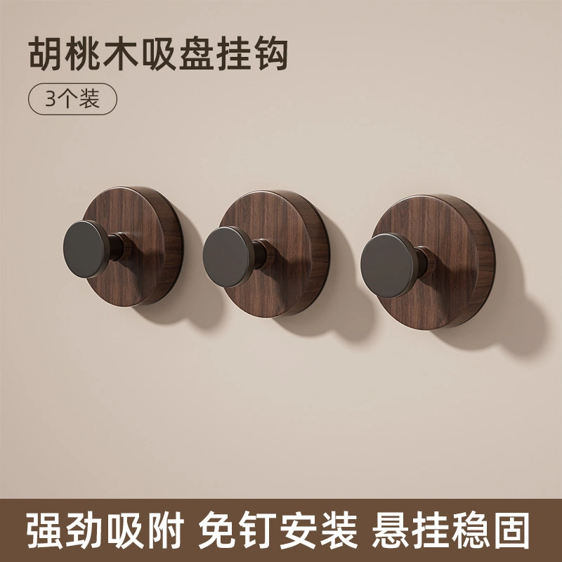 Walnut Grain Vacuum Suction Hook, No Drilling Required, Strong Load-Bearing, for Hanging Clothes Behind Doors in Kitchens, Bathrooms, and Restrooms