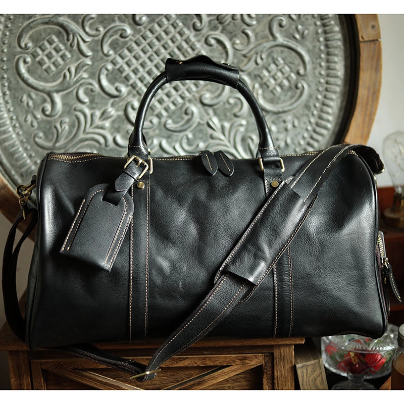 European and American Style Cowhide Men's Handbag for Outdoor Camping and Travel, Genuine Leather Large-Capacity Carry-On Bag for Business Trips and Short-Distance Luggage